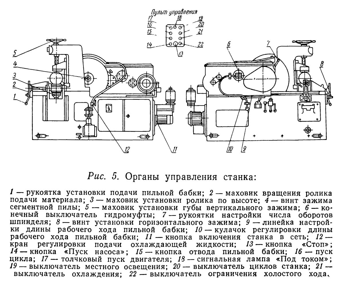 Розташування органів керування отрезным верстатом 8В66