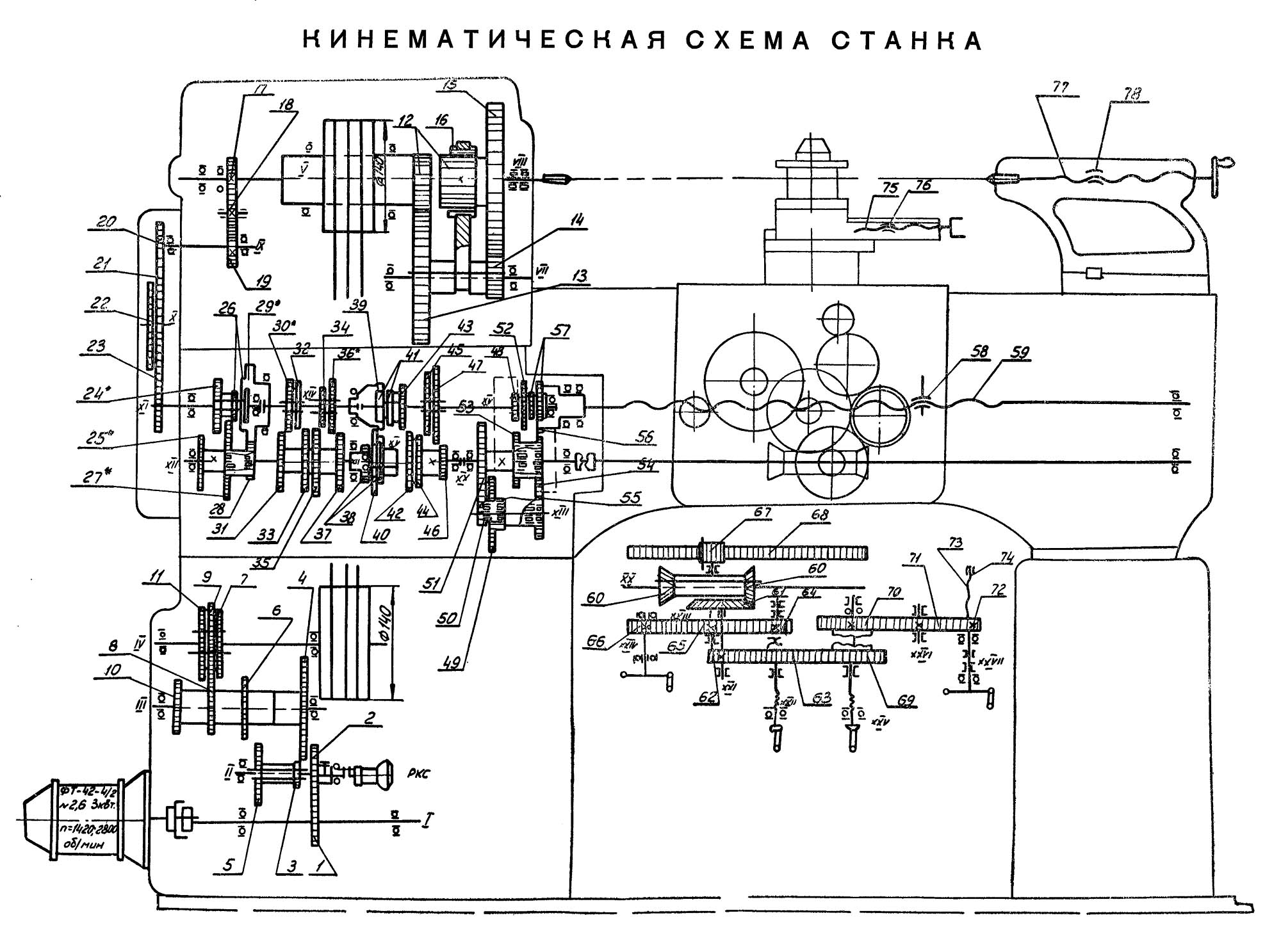 Кінематична схема токарно-гвинторізного верстата 95-ТВ