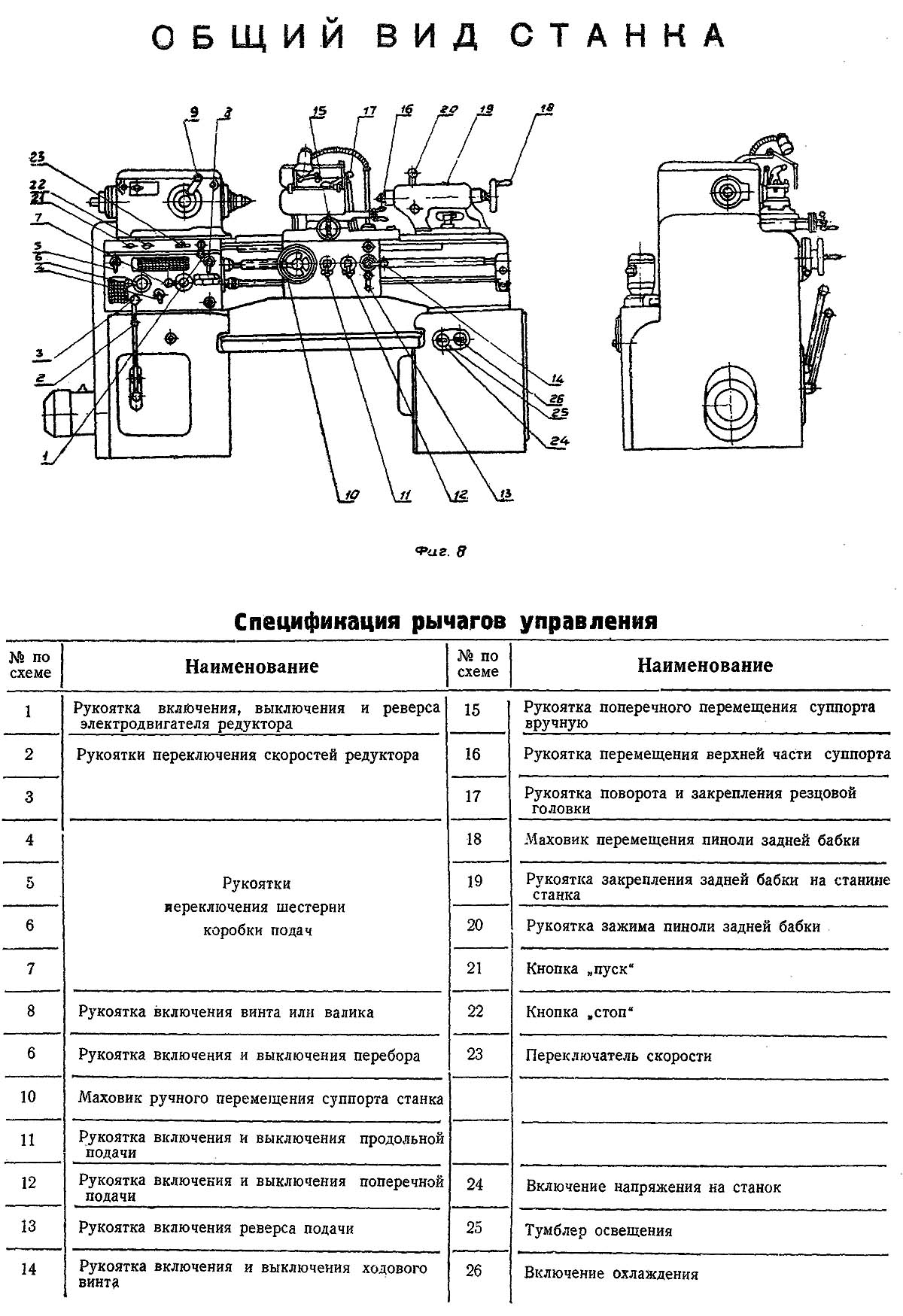 Розташування органів керування токарно-гвинторізним верстатом 95-ТВ