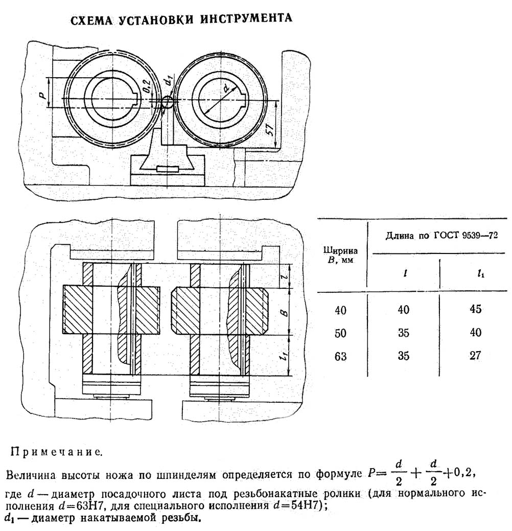 В головках смонтированы приводные шпиндели, на шейках которых размещены резьбонакатные ролики. Осевое перемещение подвижной головки і создание технологического зусилля накатывания осуществляется з помощью гідроцилиндра. Шпиндели получают вращение от електродвигуна постоянного тока через клиноременную і зубчатую передачи. Плита з електродвигуном постоянного тока обертання і ходу подвижной головки — бесступенчатые. Возможен варіант исполнения напівавтомату з приводом от електродвигуна переменного тока.