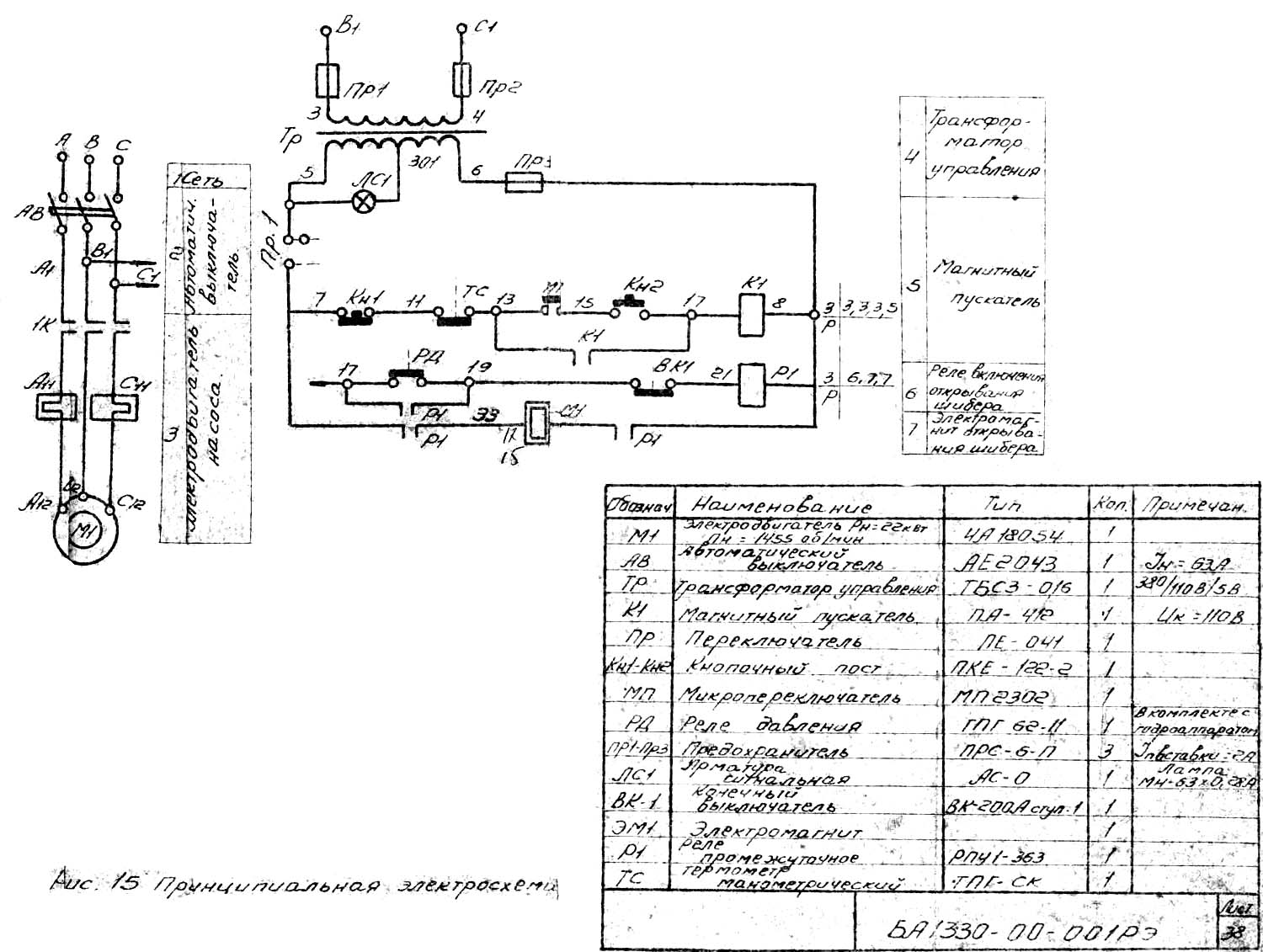 Схема електрична пакетировочного пресса БА-1330