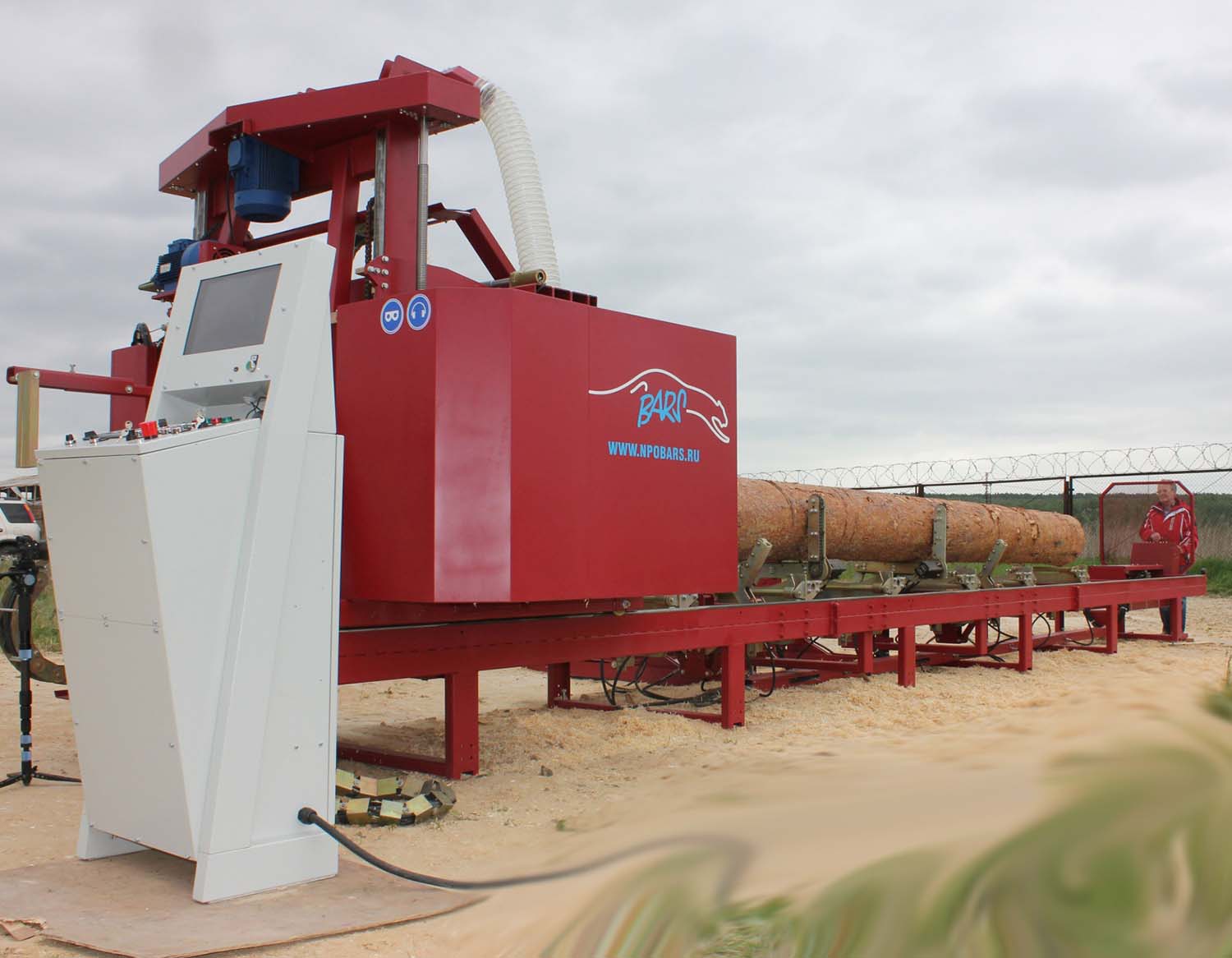 Угловой бревнопильный верстат Барс-5 предназначен для роботи в лесопильном цехе по производству заготовок для погонажных изделий, клееного бруса, мебельного щита, окон, паркета, мебели.