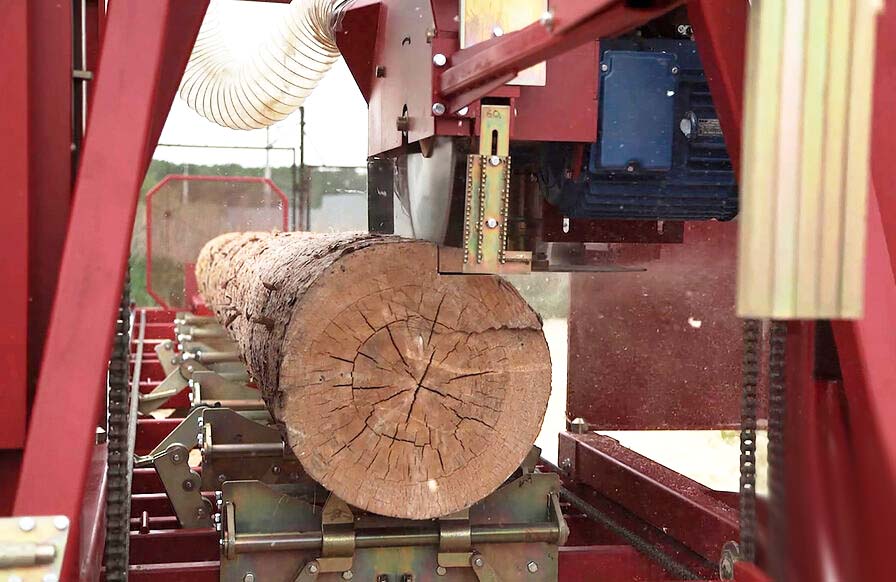 Пиловочник крепится на станине з помощью механических или гідравлических устройств. Шесть пар зажимов надежно удерживают бревно в процессе распиловки, оставляя горбыль після распиловки не более 1,5-2 см.