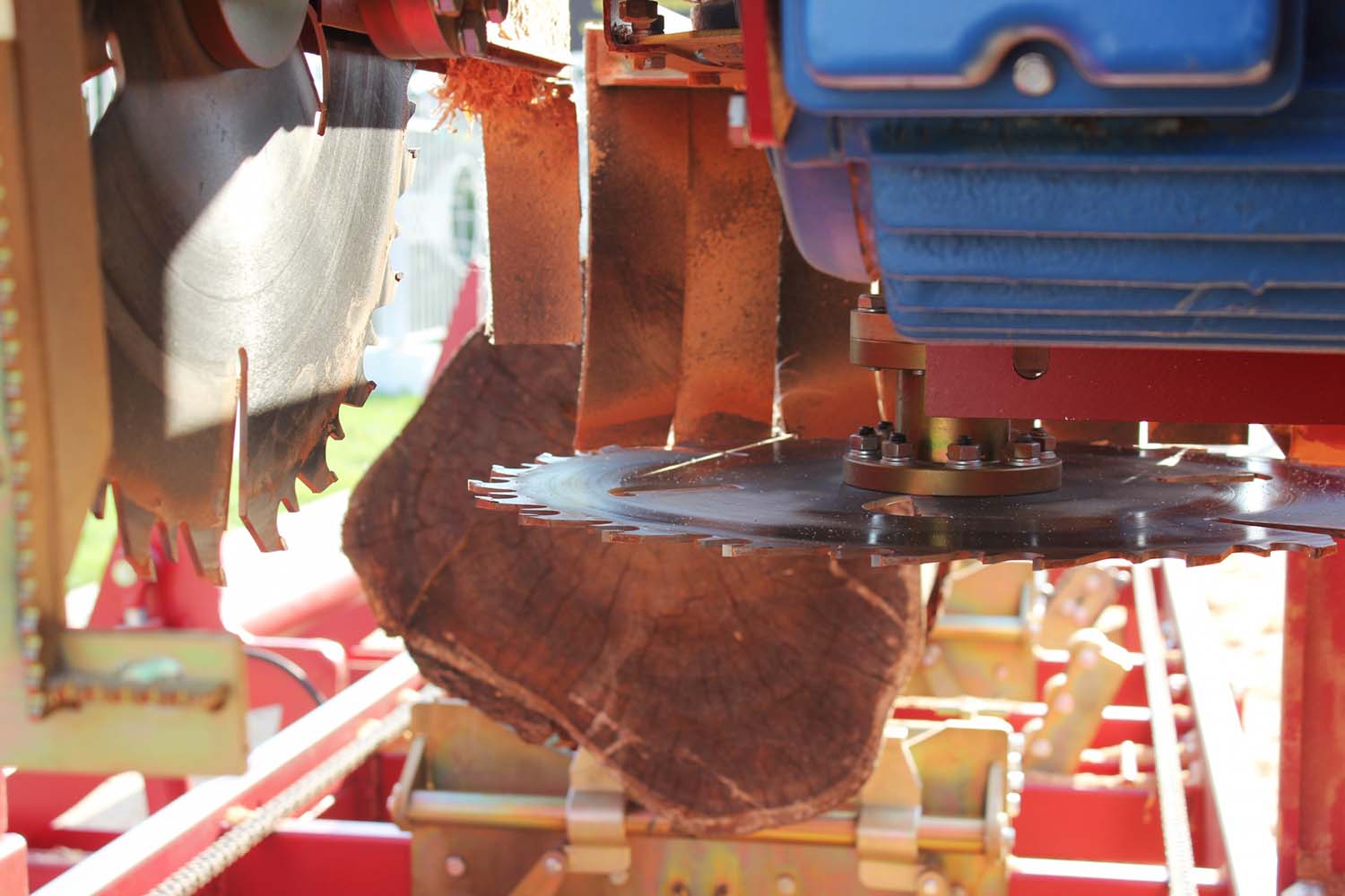 Для распиловки применяются пильные диски из высокопрочной стали з твердосплавными зубьями. Диски расположены горизонтальной і вертикальной плоскостях.