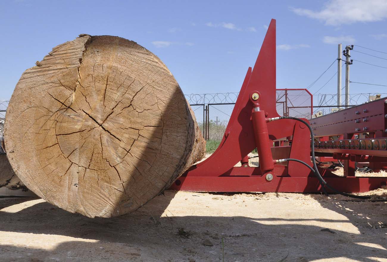 Загрузка бревна на круглопильный верстат Барс-ДГ2