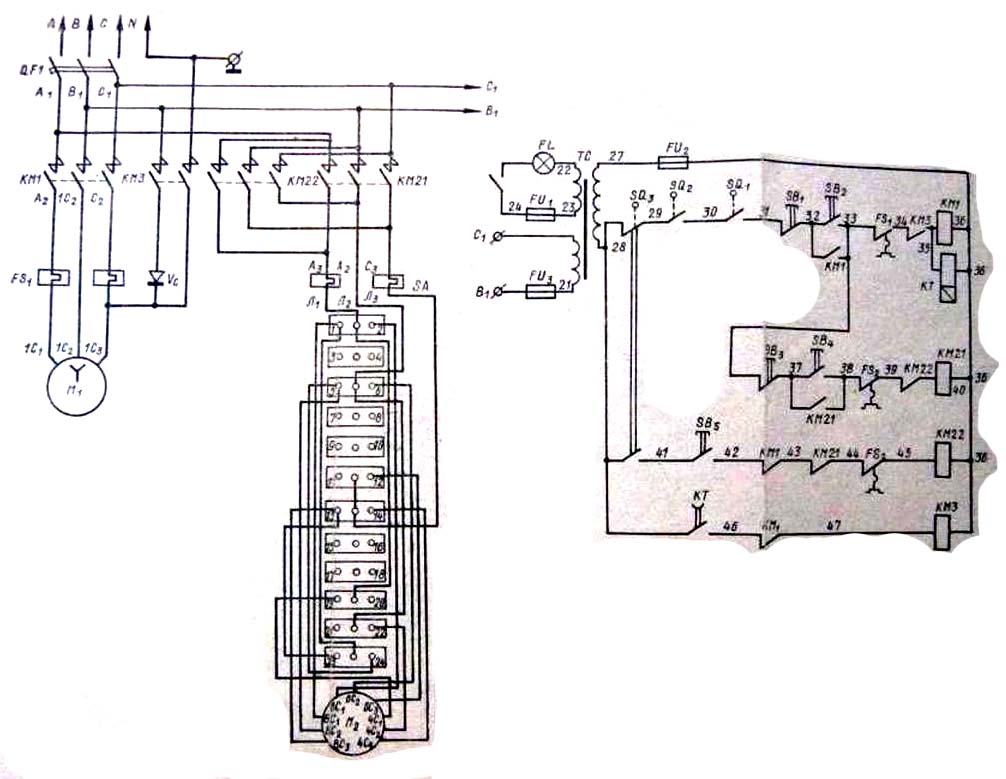Схема електрична принципова верстата ЦА-2А. Дивитись у збільшеному масштабі