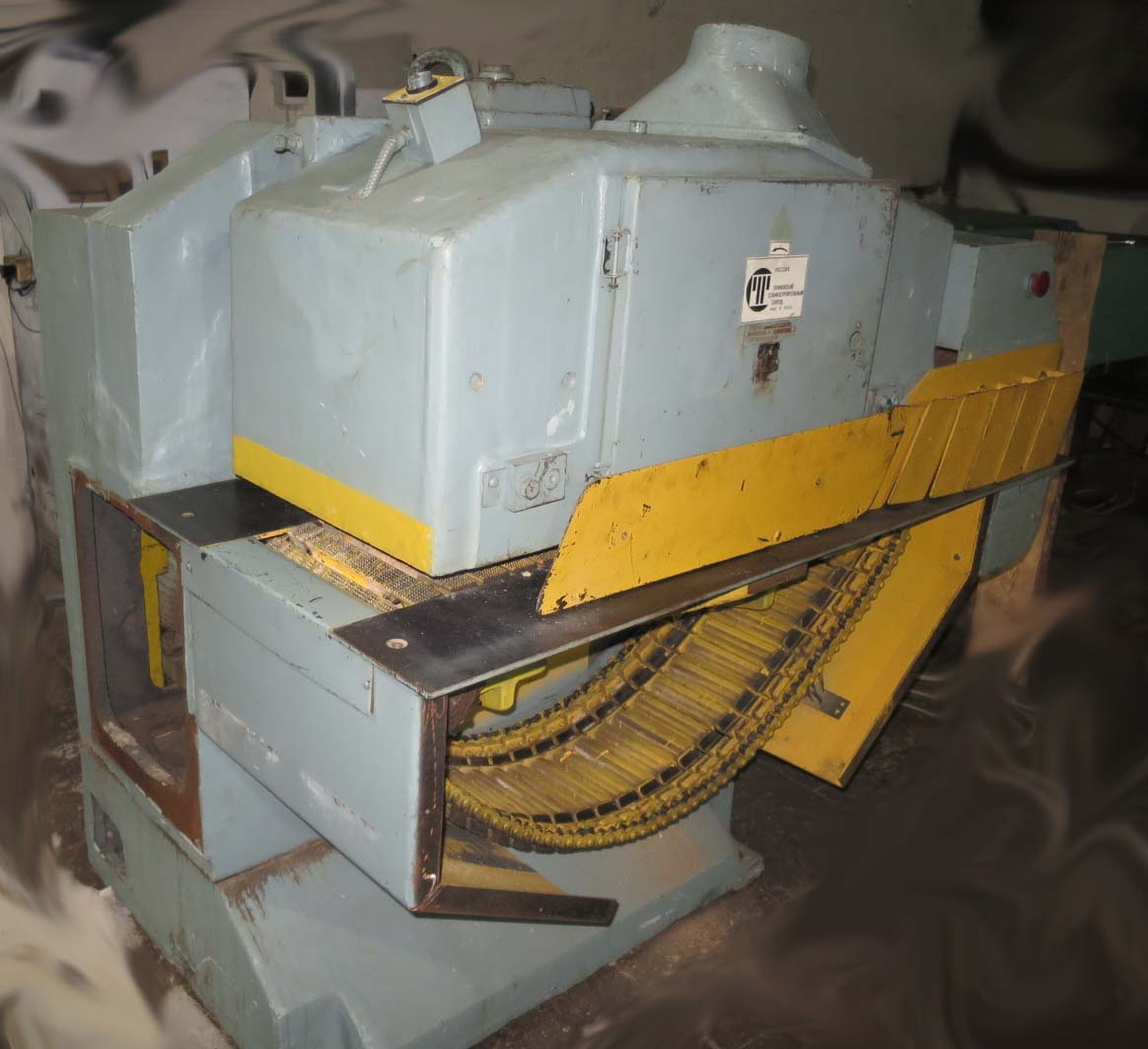 Подача заготовок производится широкой (300 мм) конвейерной ланцюгю, движущейся по текстолитовым призматическим направляющим.