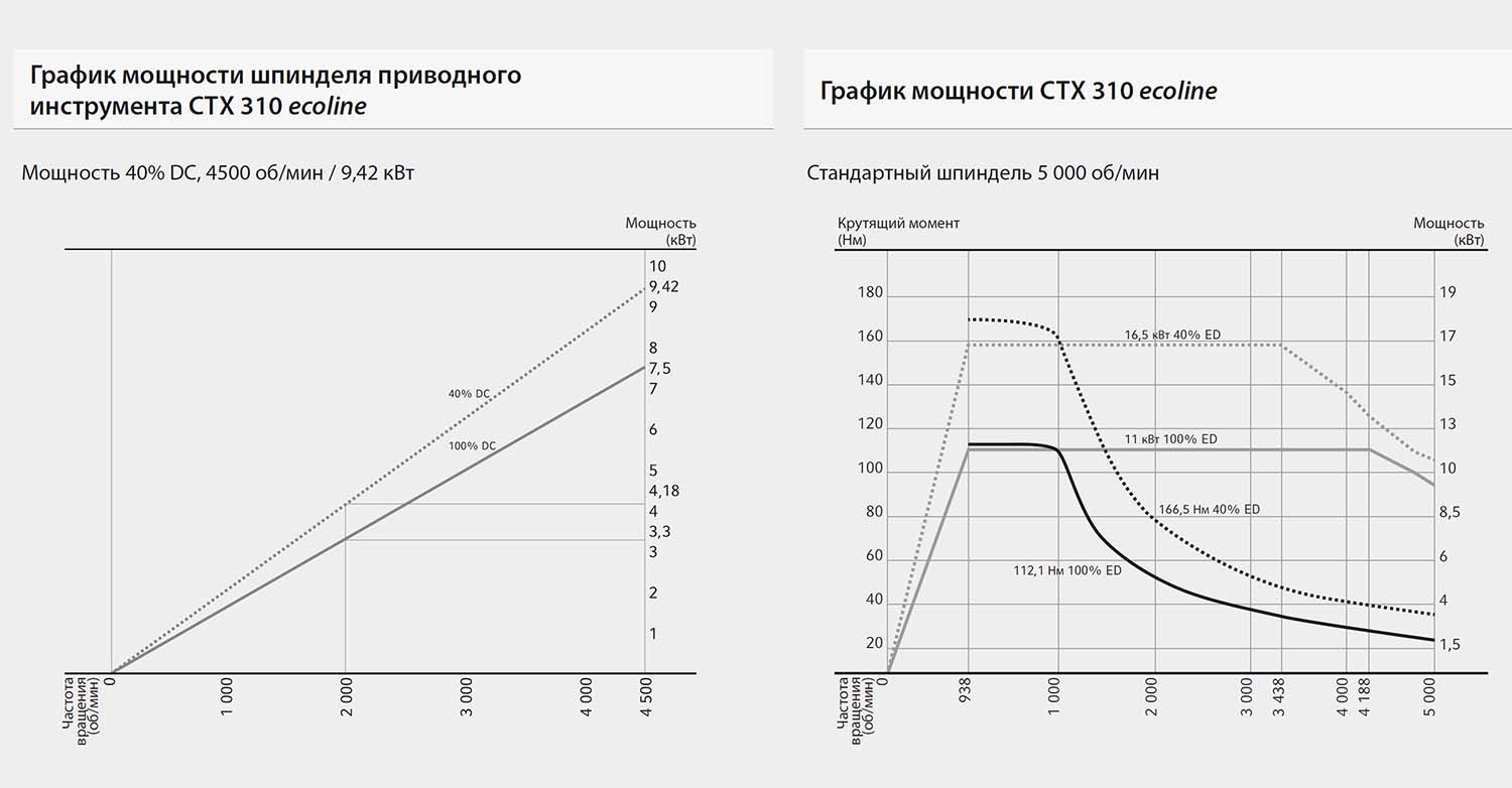 Графік потужності шпинделя приводного інструменту токарного верстата ctx 310