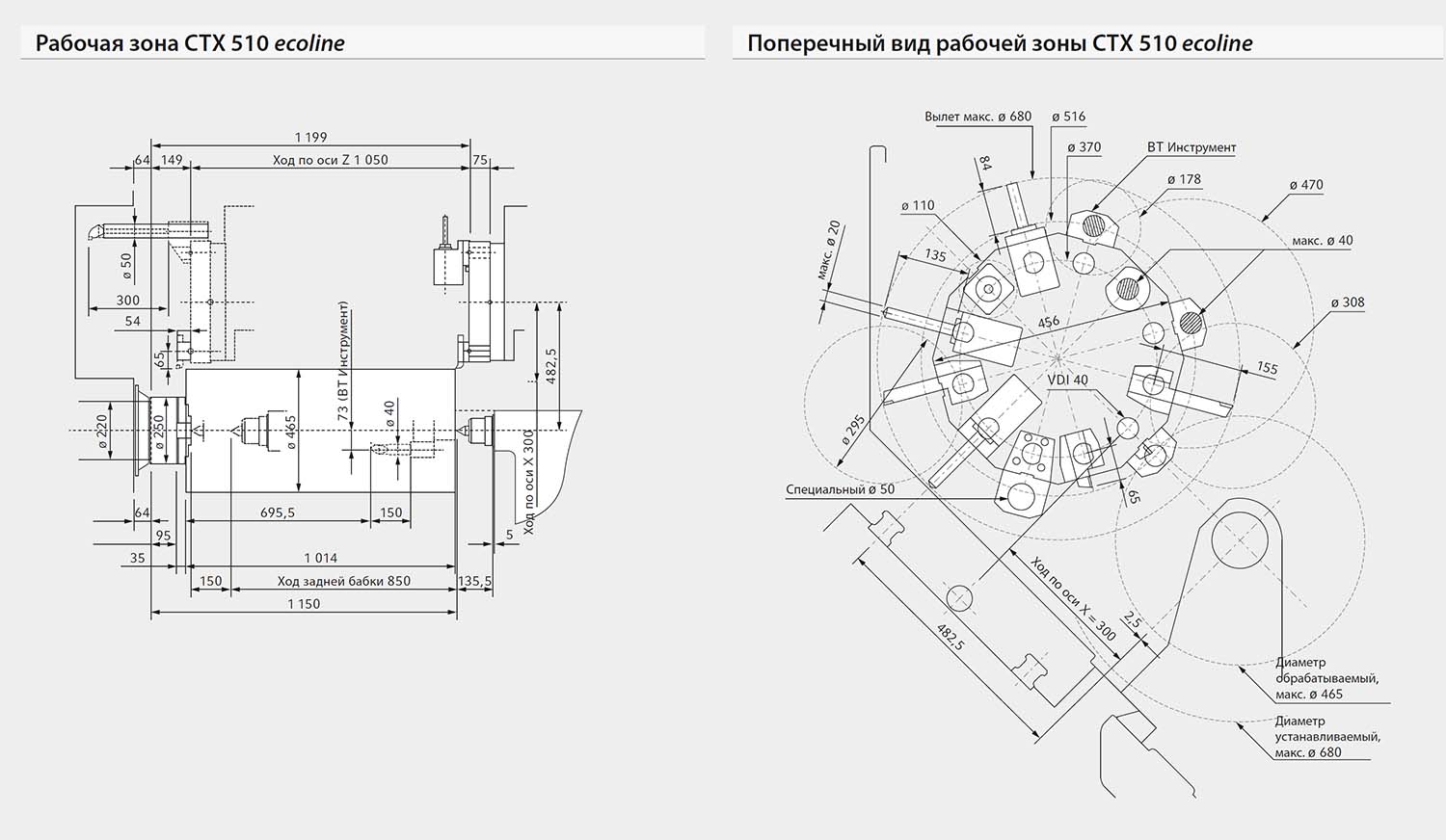 Діаметр обробки та розміри деталі, що обробляється на CTX 510