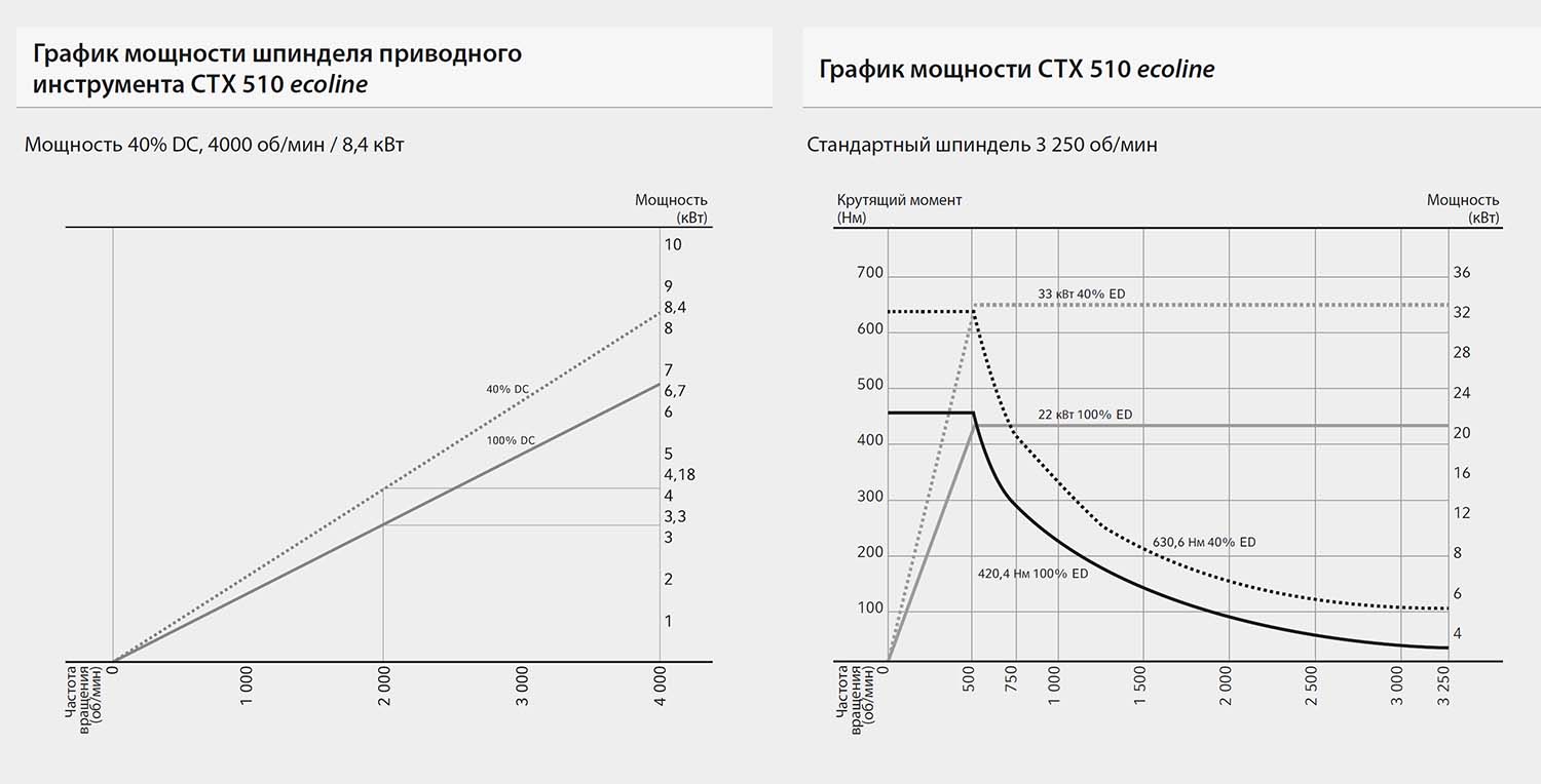Графік потужності шпинделя приводного інструменту токарного верстата CTX 510