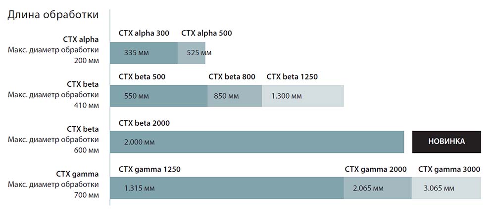 Розподіл верстатів сімейства CTX за розміром оброблюваних деталей. Дивуватися у збільшеному масштабі