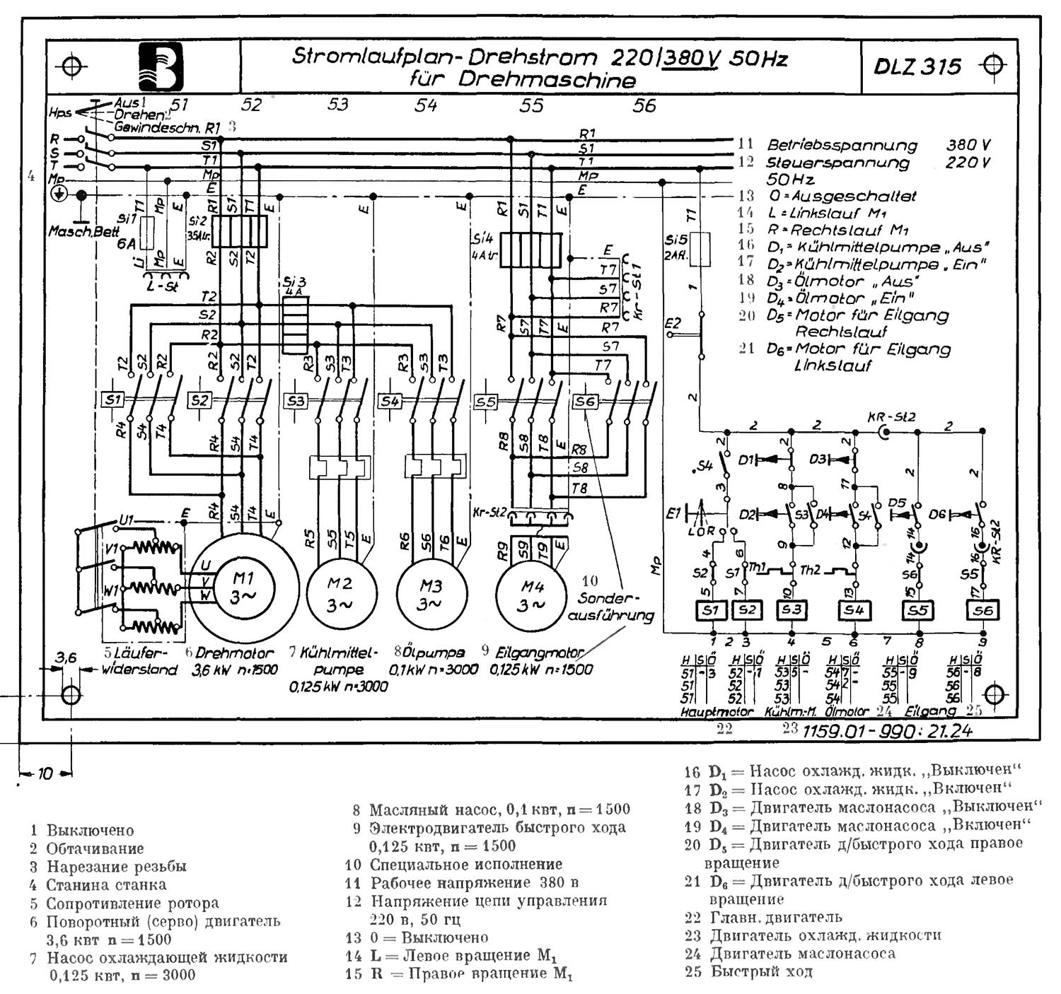 Електрична схема токарно-гвинторізного верстата DLZ-315