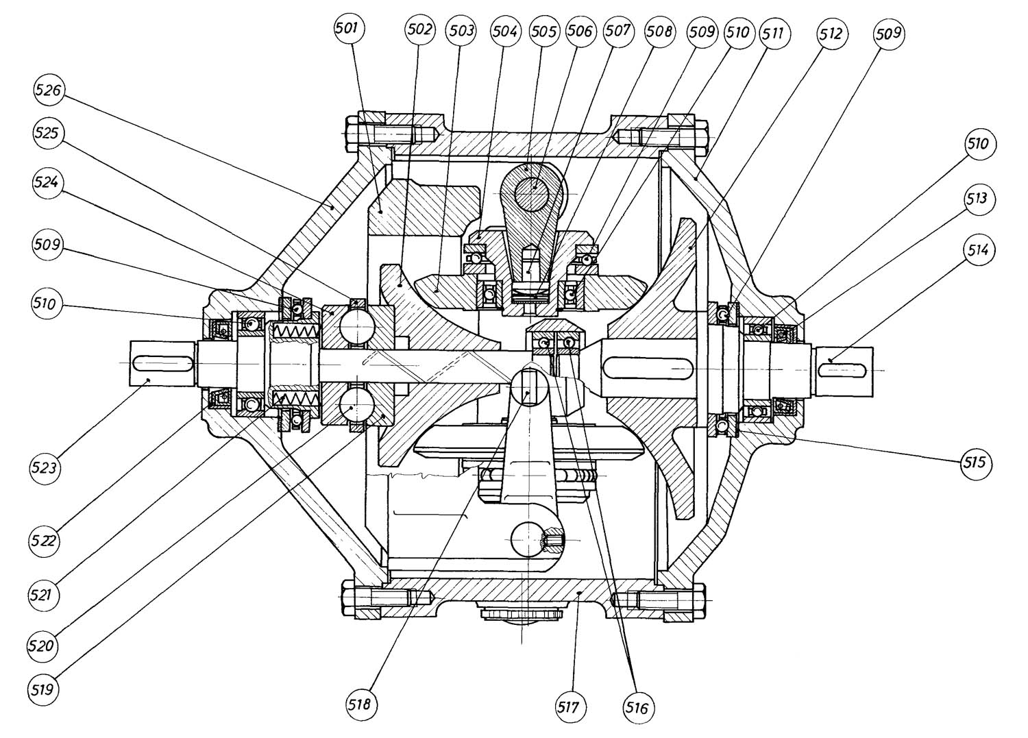 Завдяки розбризкуванню, масло, що заправляється до рівня масловказівника, змащує всі частинини варіатора, що обертаються. Установка чисел оборотів може здійснюватися повертанням єдиної рукоятки, під час роботи, і відрегульоване число оборотів може відраховуватися по лімбу. Регулювання та зміна чисел оборотів можуть проводитись тільки на ходу.