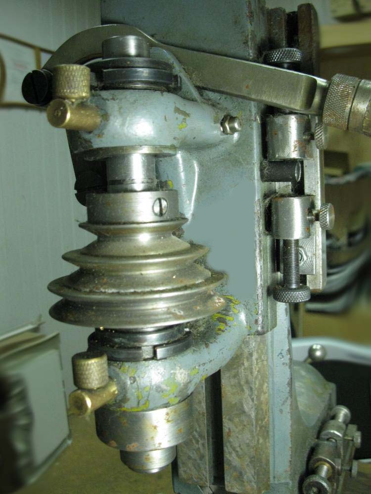 Шпиндель верстата обертається у двох бронзових втулках. Передня втулка цілісна з внутрішнім отвором конусним, а задня розрізна.