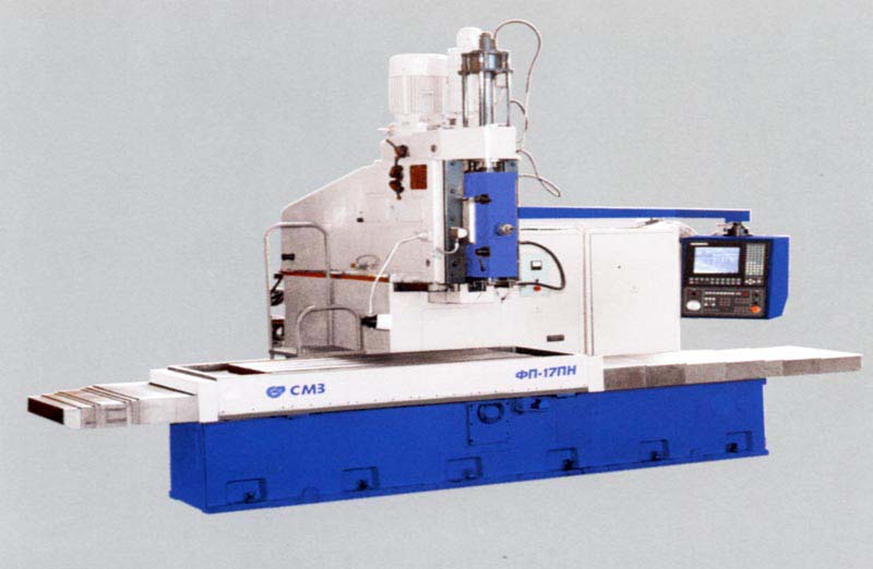 Верстат фрезерный вертикальний ФП-17 специализированный з ЧПУ і автоматичною сменой инструмента (АСИ) предназначен для обробки деталей сложной криволинейной формы типа дисков, плит, рычагов, корпусных деталей і др. из сталей, титановых і легких сплавов в условиях механического цеха при отсутствии вблизи сварочных аппаратов установок ТВЧ і других источников помех і тепловой радиации, а также оборудования ударного дії, вызывающего вибрацию.