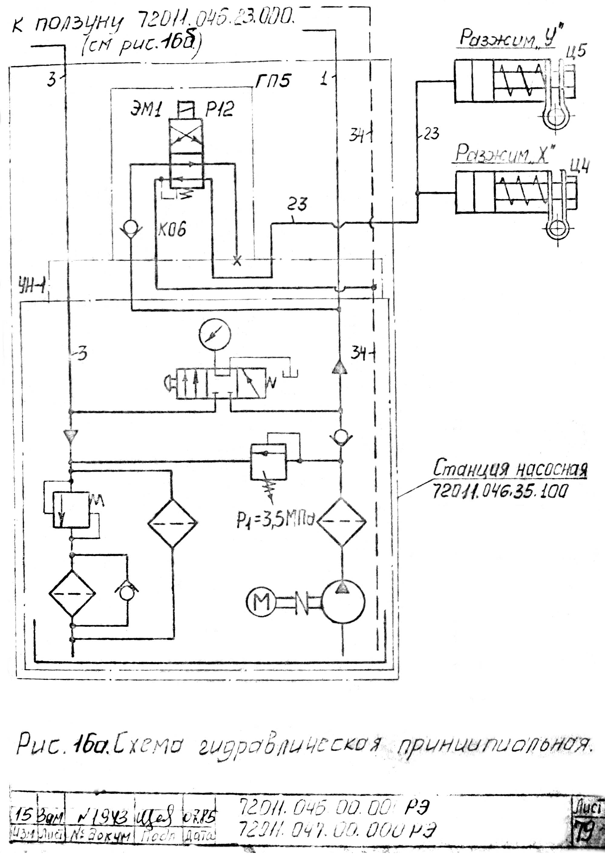 Гідравлічна схема бесконсольного вертикально-фрезерного верстата ФП-17. Дивитись у збільшеному масштабі