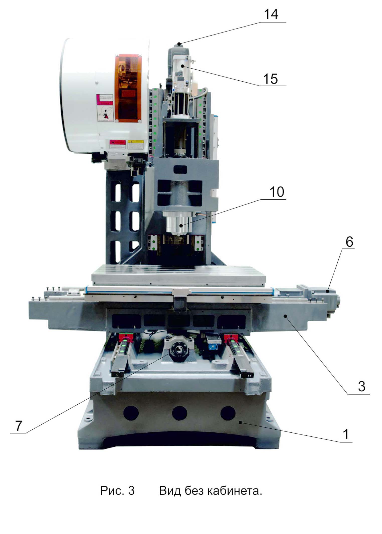 Основание і колонна образуют основной несущий узел, предназначенный для переміщення стола з салазками і шпиндельной бабки. Основание представляет собой чугунную отливку коробчатой формы, усиленную внутренними поперечными і продольными ребрами. На верхней плоскости по бокам станины крепятся профильные Х-образные шариковые рельсовые направляющие для салазок стола, которые обеспечивают перемещение по оси Y. На салазках установлена другая пара направляючих для переміщення стола по оси Х.