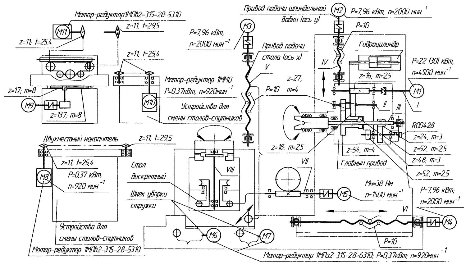 Кінематична схема многоцелевого верстата ИС-800ПМФ4