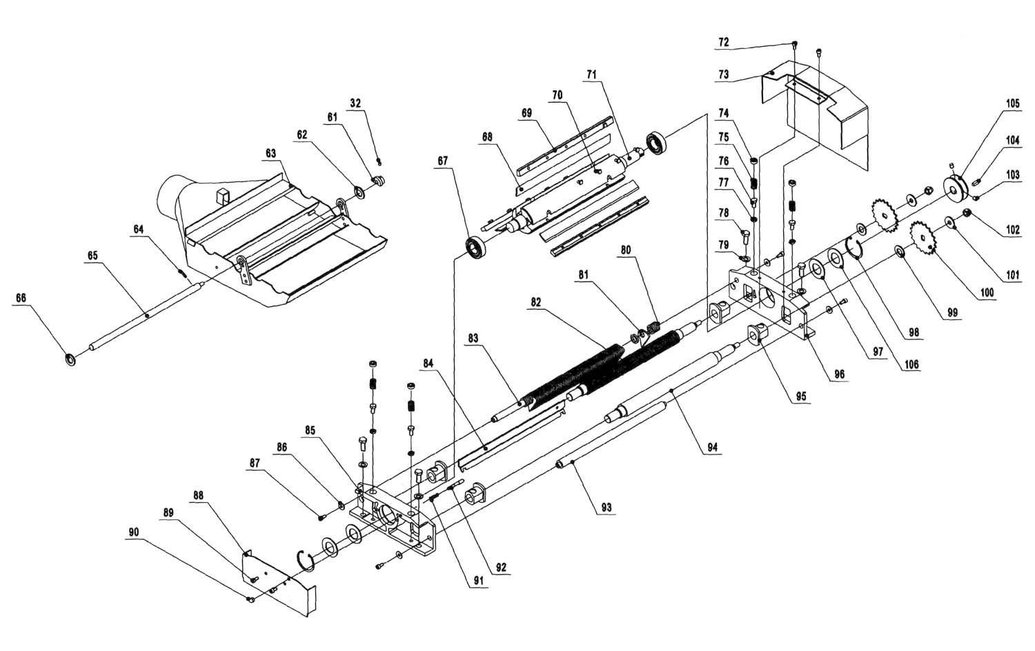 Монтажная схема верстата JPT-310: строгальный вал в сборе. Дивитись у збільшеному масштабі