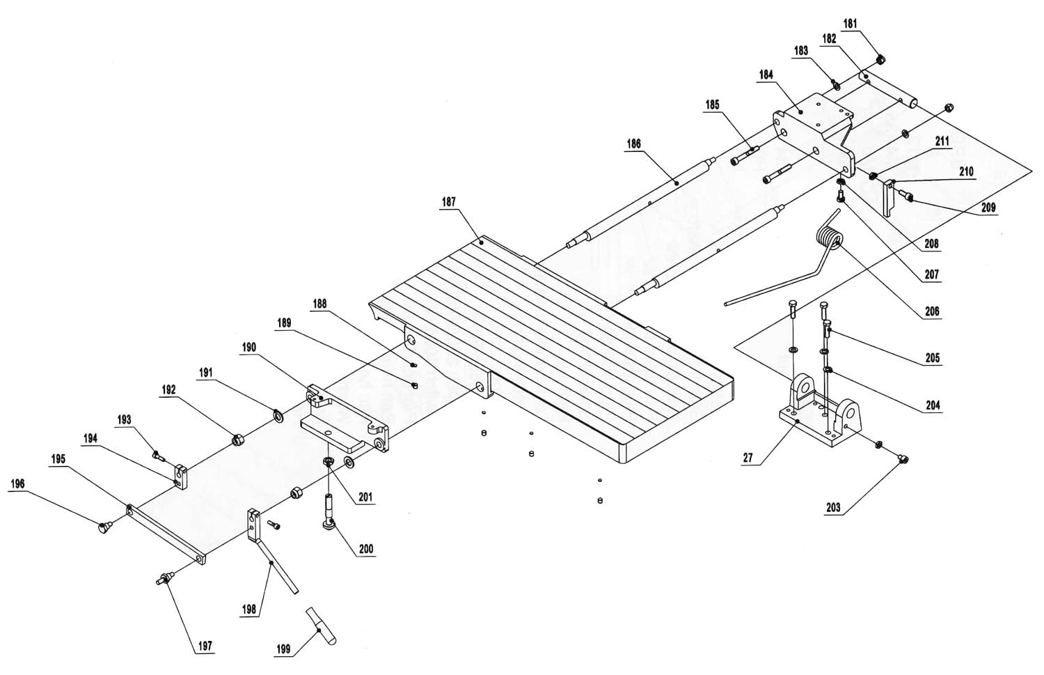 Монтажная схема верстата JPT-310: фуговальный приемный (разгрузочный) стол в сборе