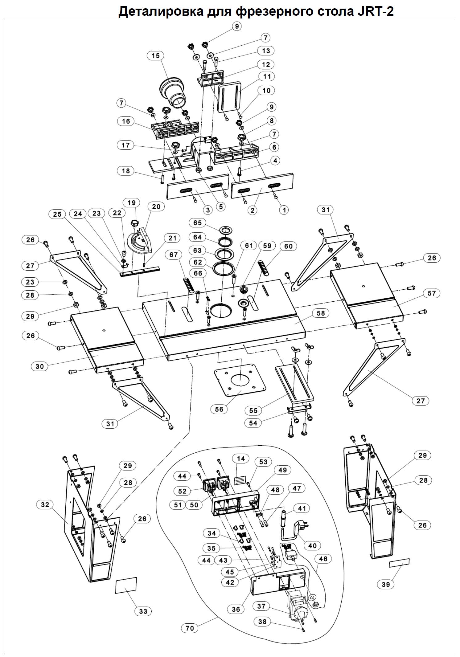 Схема і детали сборки стола фрезерного стола JRT-2