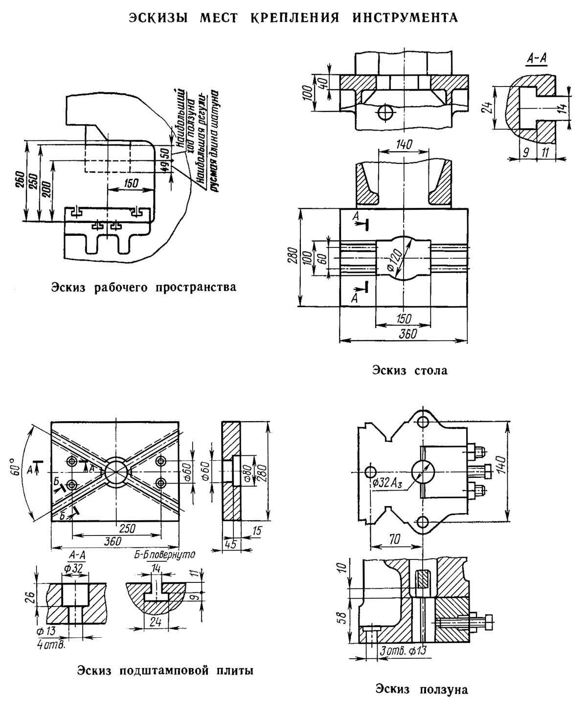 Ескізы мест крепления инструмента кривошипного пресса КД2114
