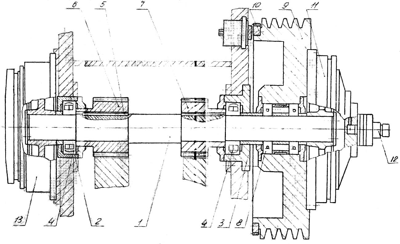 Вал главный приводится во вращение приемным валом і вместе з шатуном 16 преобразует вращательное рух приводу в возвратно-поступательное рух ползуна з установленной величиной ходу.
