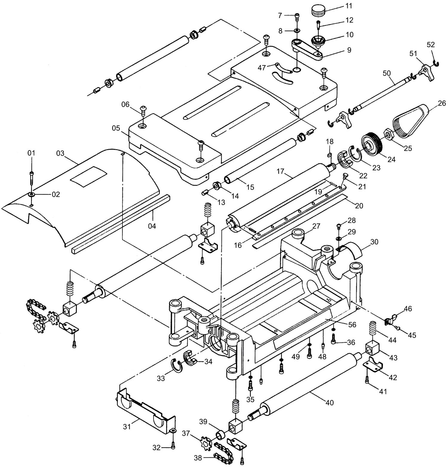 Корвет-21 Верстат рейсмусовый. Схема і детали сборки. Дивитись у збільшеному масштабі