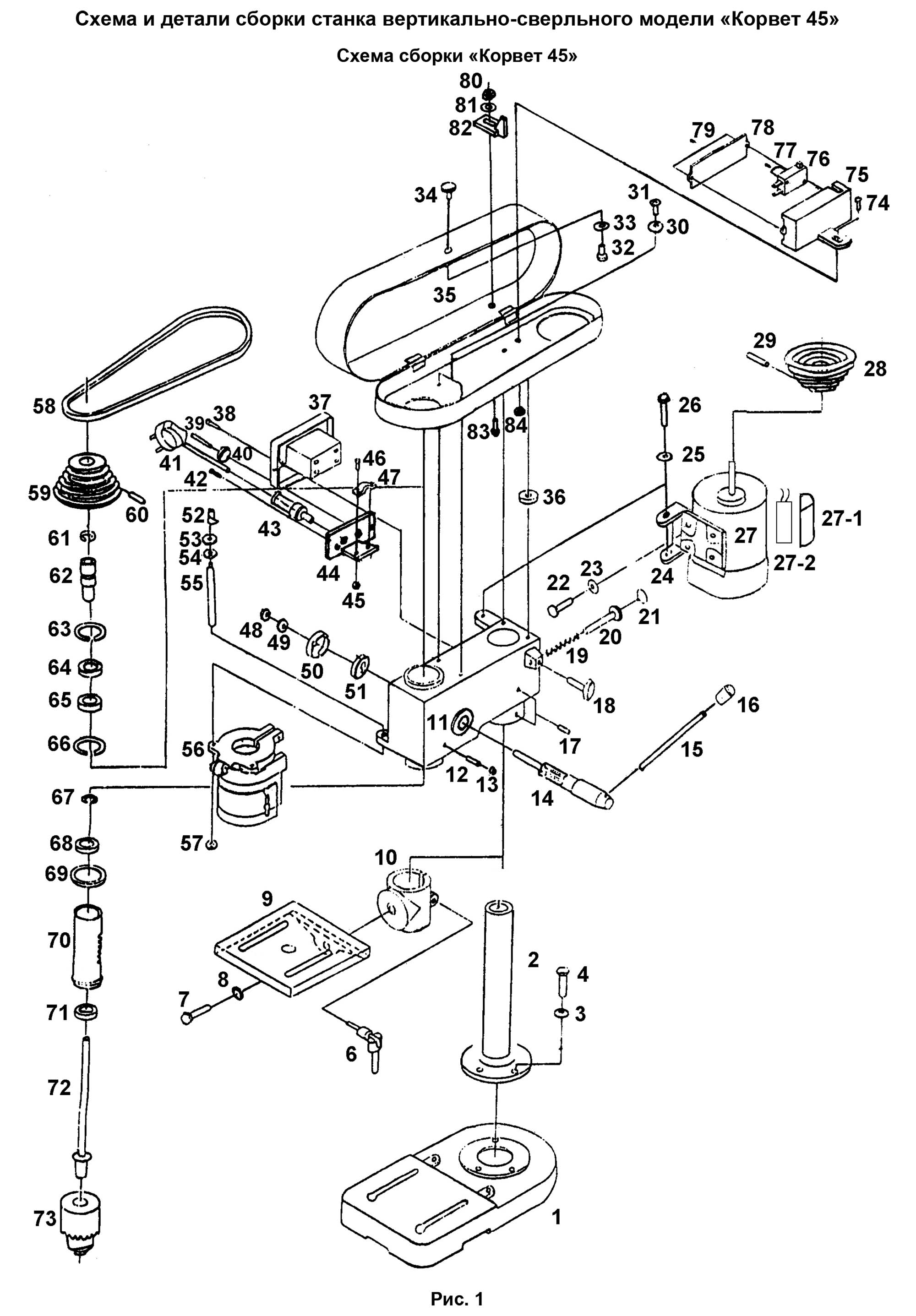 Схема складання свердлильного верстата Корвет-45. Дивитись у збільшеному масштабі