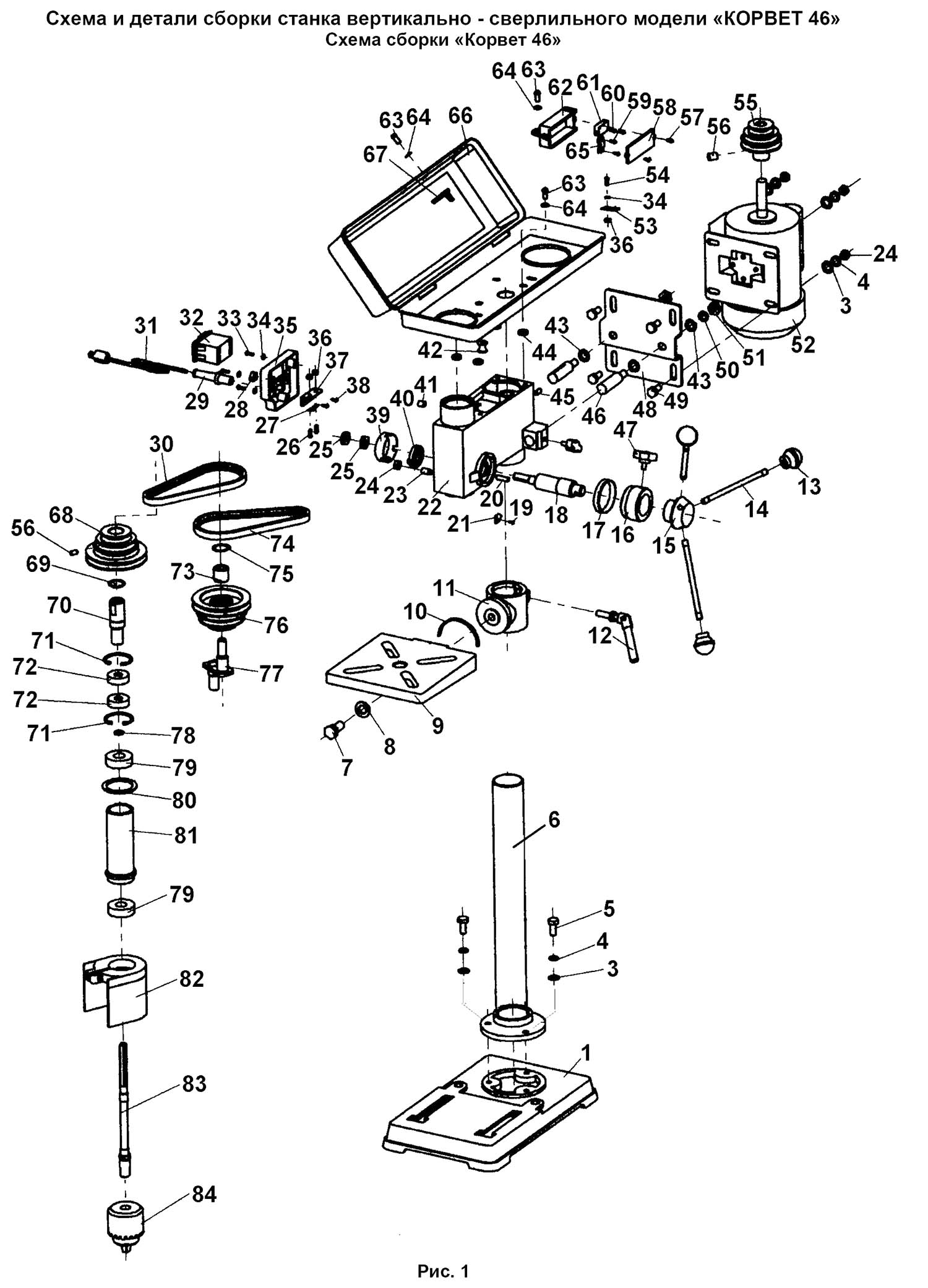 Схема складання свердлильного верстата Корвет-46. Дивитись у збільшеному масштабі