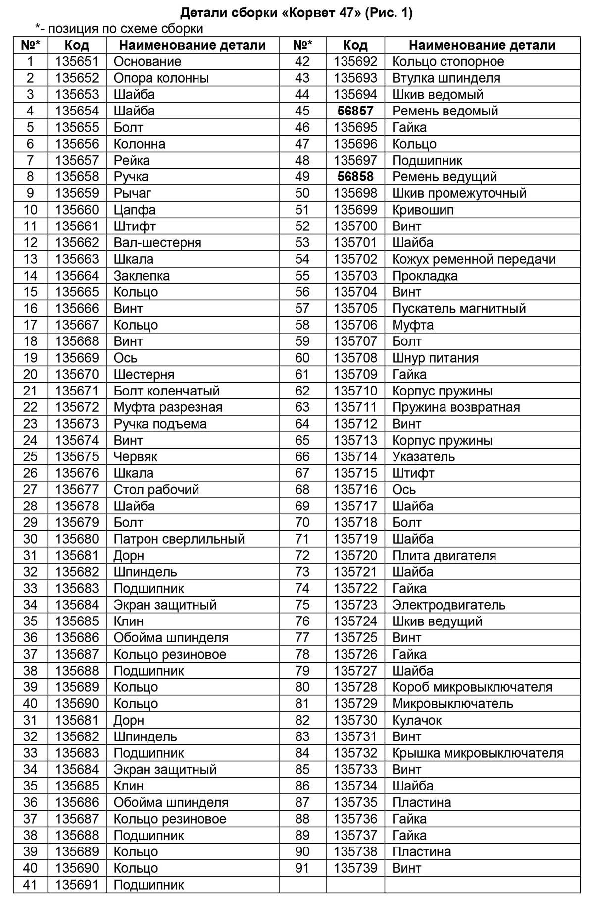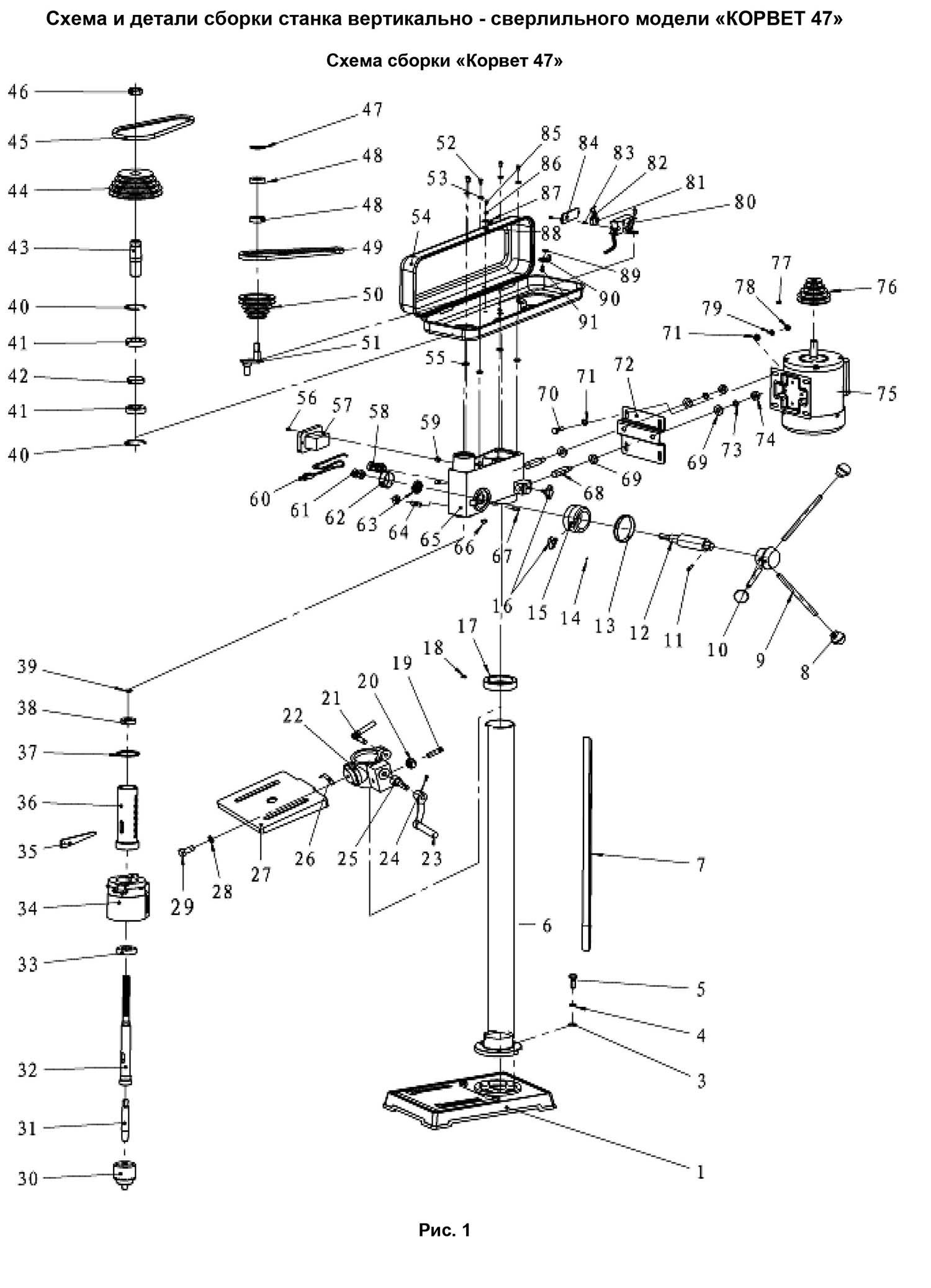 Схема складання свердлильного верстата Корвет-47. Дивитись у збільшеному масштабі