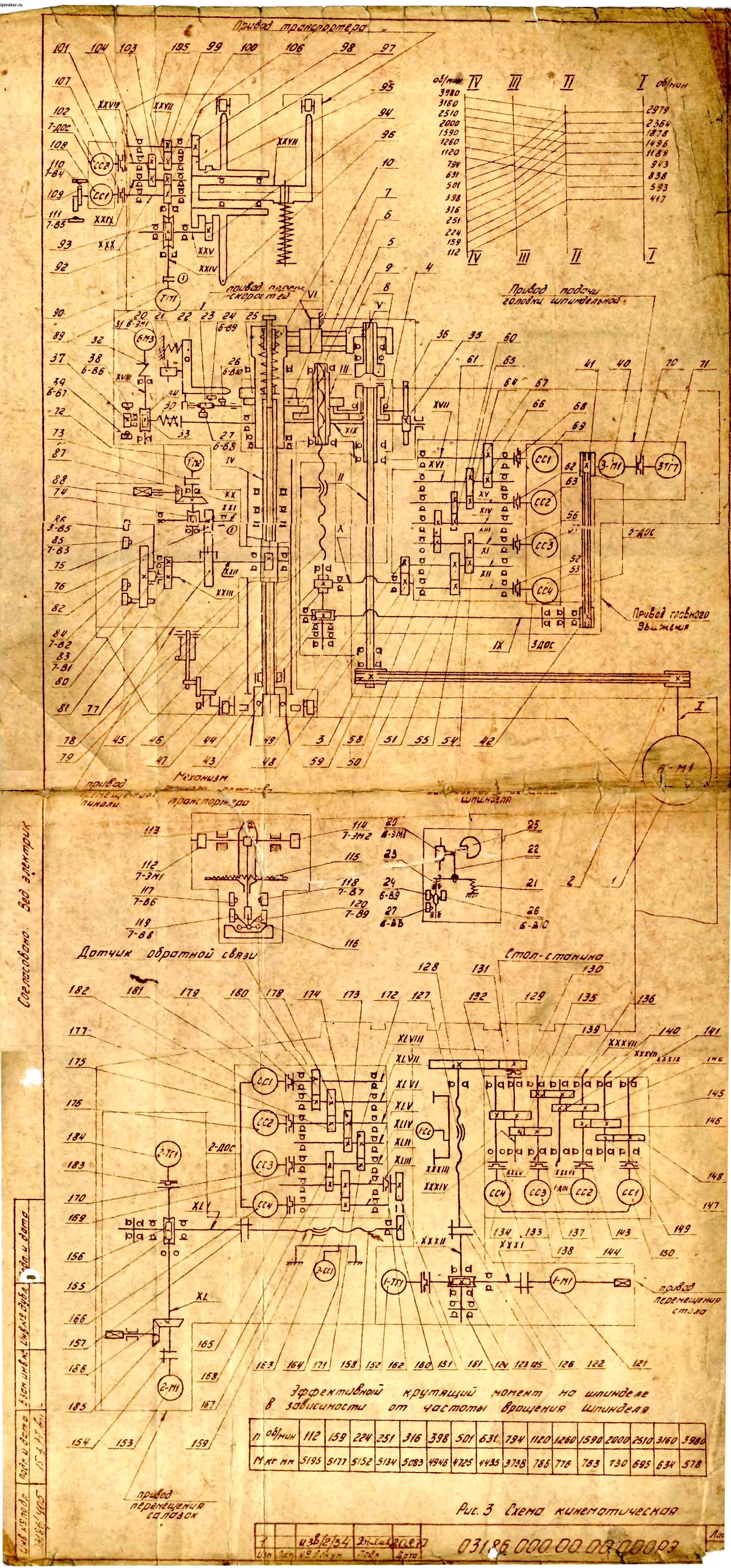 Кінематична схема координатно-свердлувального верстата КС12-500М2. Збільшене креслення