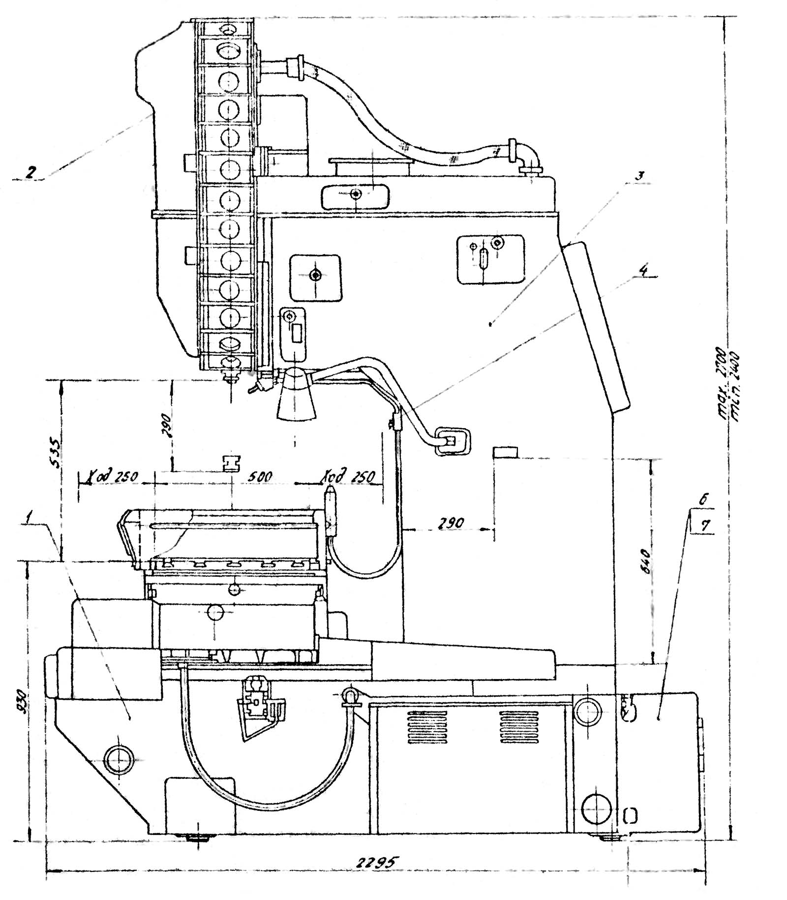 Розташування основних вузлів координатно-свердлувального верстата КС12-500М2. Збільшене креслення