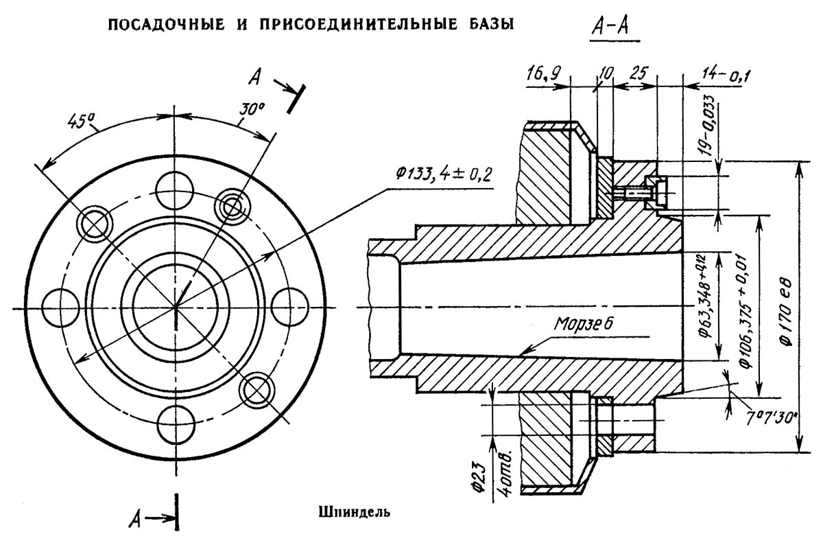 Посадочні та приєднувальні бази токарного верстата КТ-141. Шпіндель. Дивитись у збільшеному масштабі