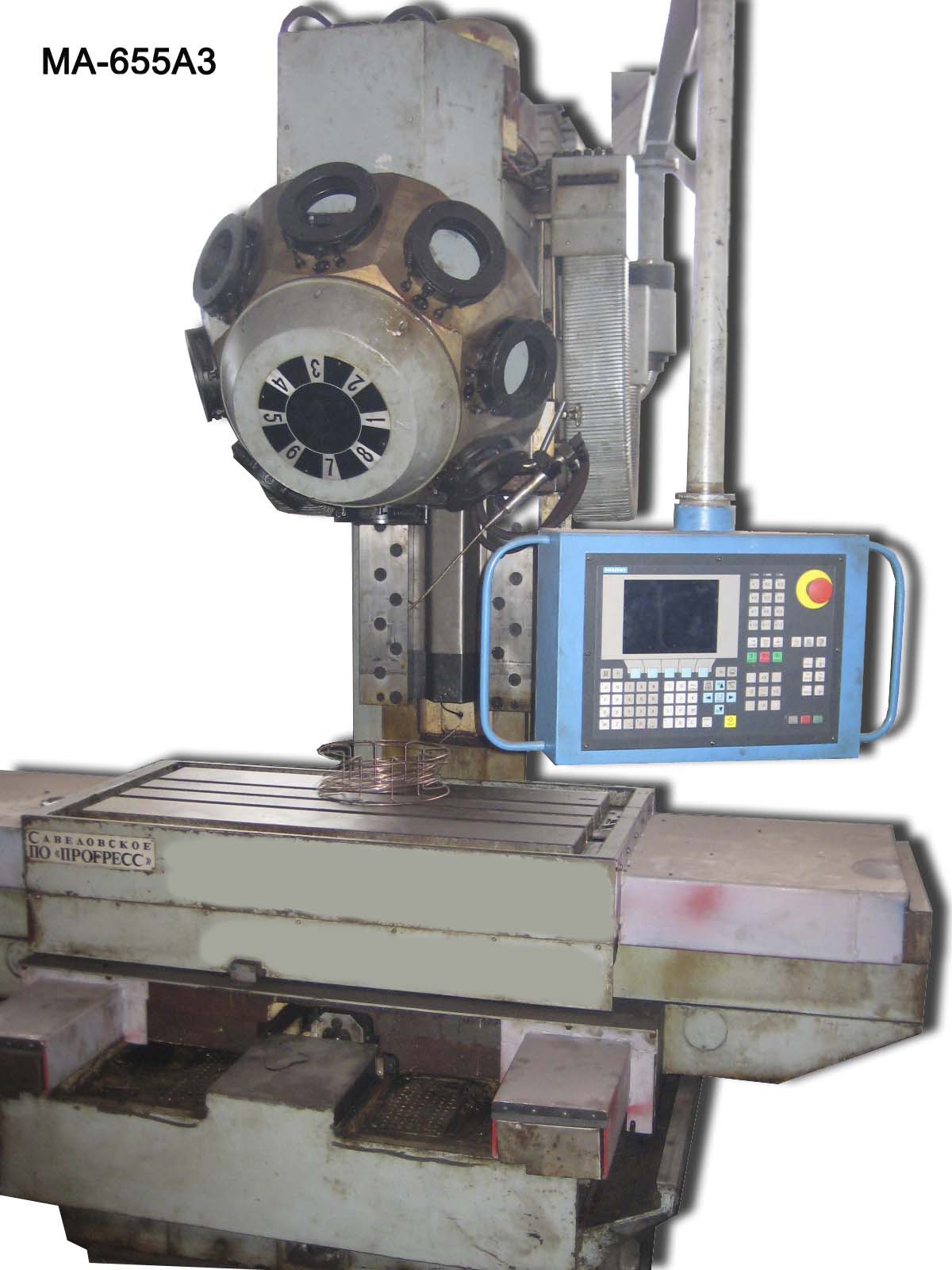 Верстат фрезерный вертикальний МА655 специализированный з ЧПУ і автоматичною сменой инструмента (АСИ) предназначен для обробки деталей сложной криволинейной формы типа дисков, плит, рычагов, корпусных деталей і др. из сталей, титановых і легких сплавов в условиях механического цеха при отсутствии вблизи сварочных аппаратов установок ТВЧ і других источников помех і тепловой радиации, а также оборудования ударного дії, вызывающего вибрацию.