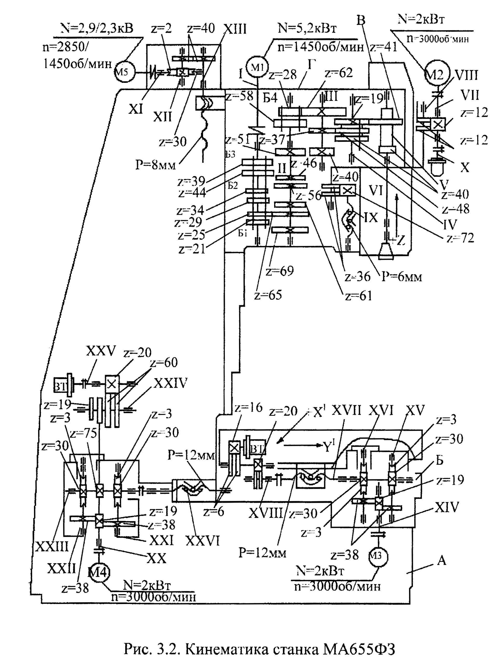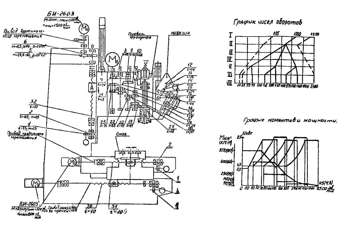 Кінематична схема вертикально-фрезерного верстата ма-655