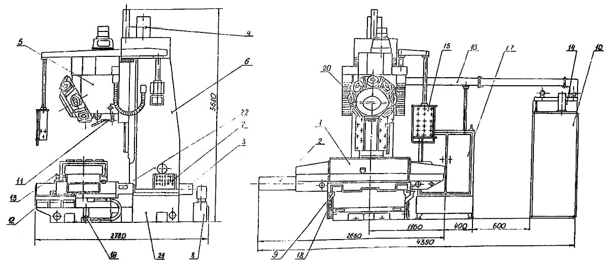 Розташування складових частин вертикально-фрезерного верстата МА-655. Дивитись у збільшеному масштабі