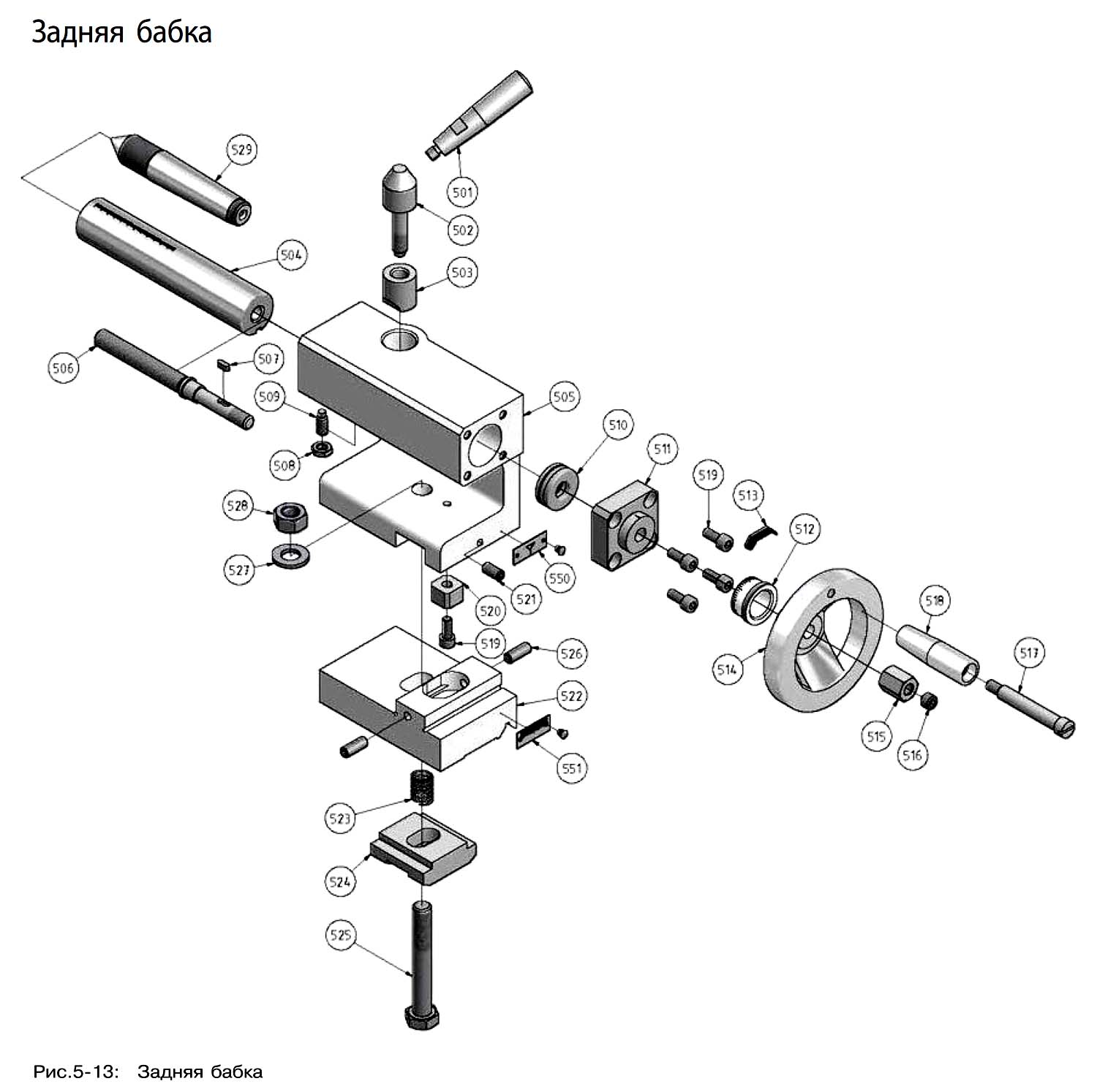 Схема збирання токарного верстата MML 180x300. Задня бабка. Дивитись у збільшеному масштабі