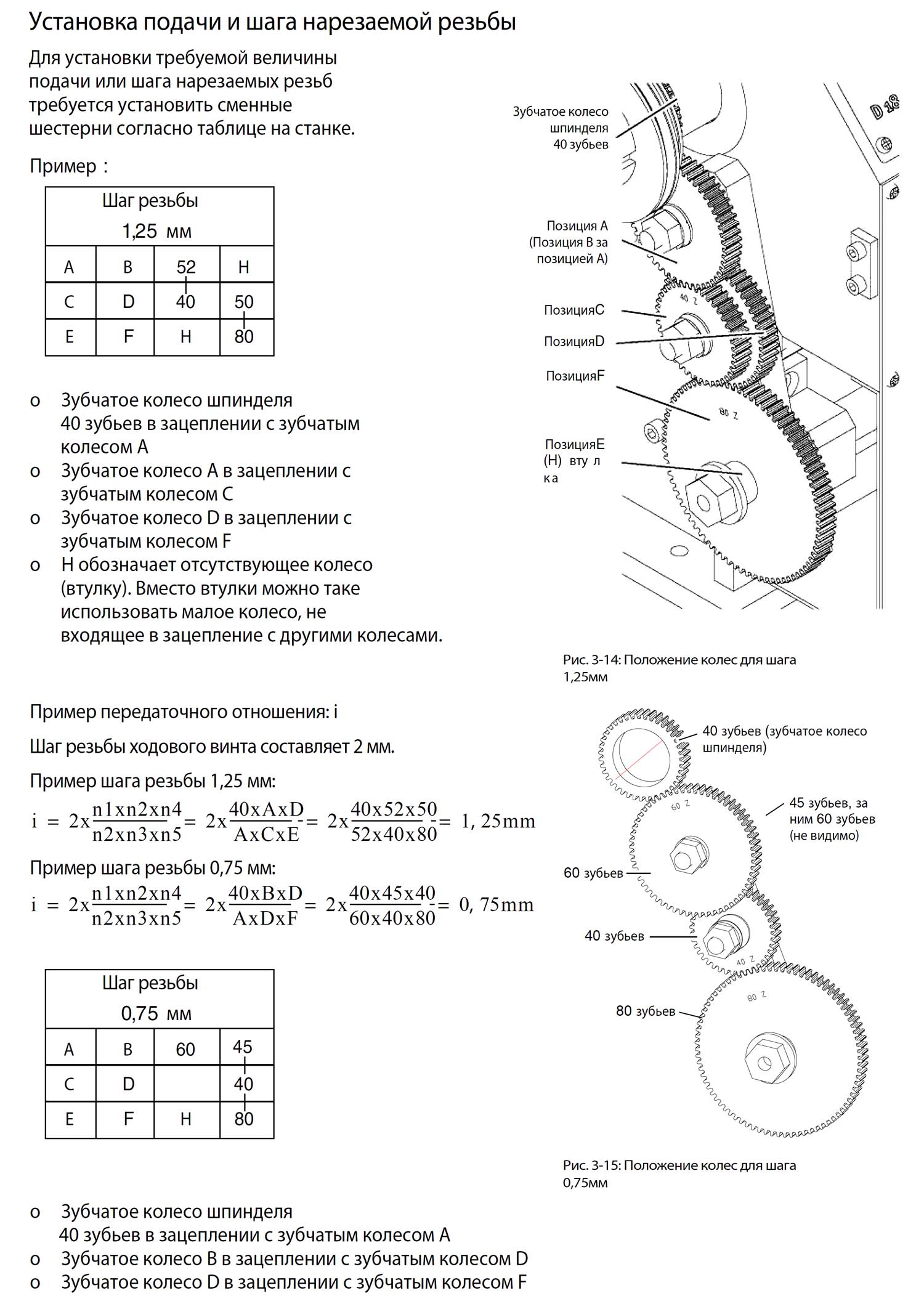 Наприклад, при включенні токарного верстата з встановленим кроком різьблення 1,25 мм і частотою обертання шпинделя 2500 хв-1 швидкість переміщення поздовжньої каретки супорта складе 52 мм в секунду.