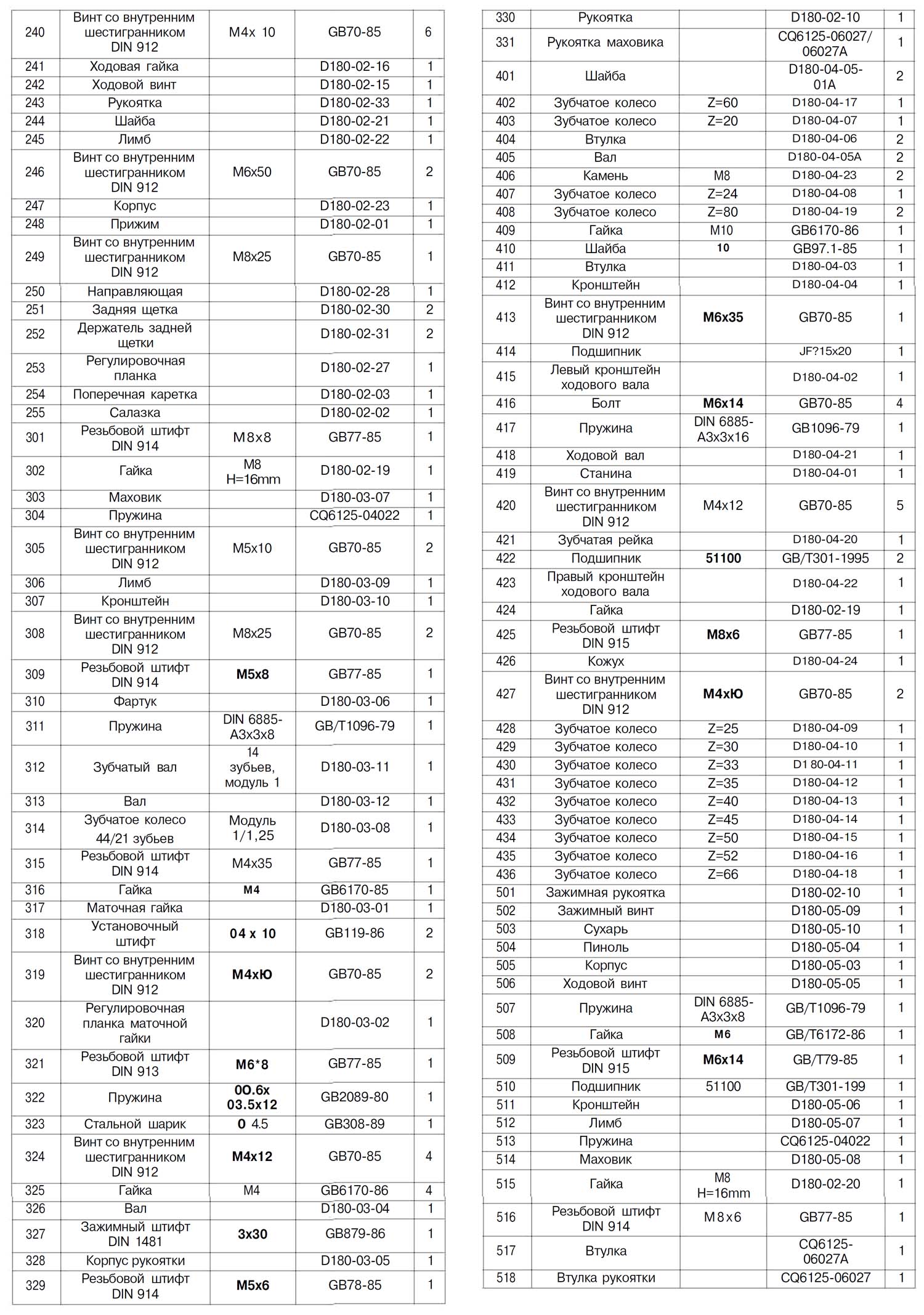 | Переміщення різцевих санок на один поділ лімба, мм | 0,02 | 0,025 | 0,025 |