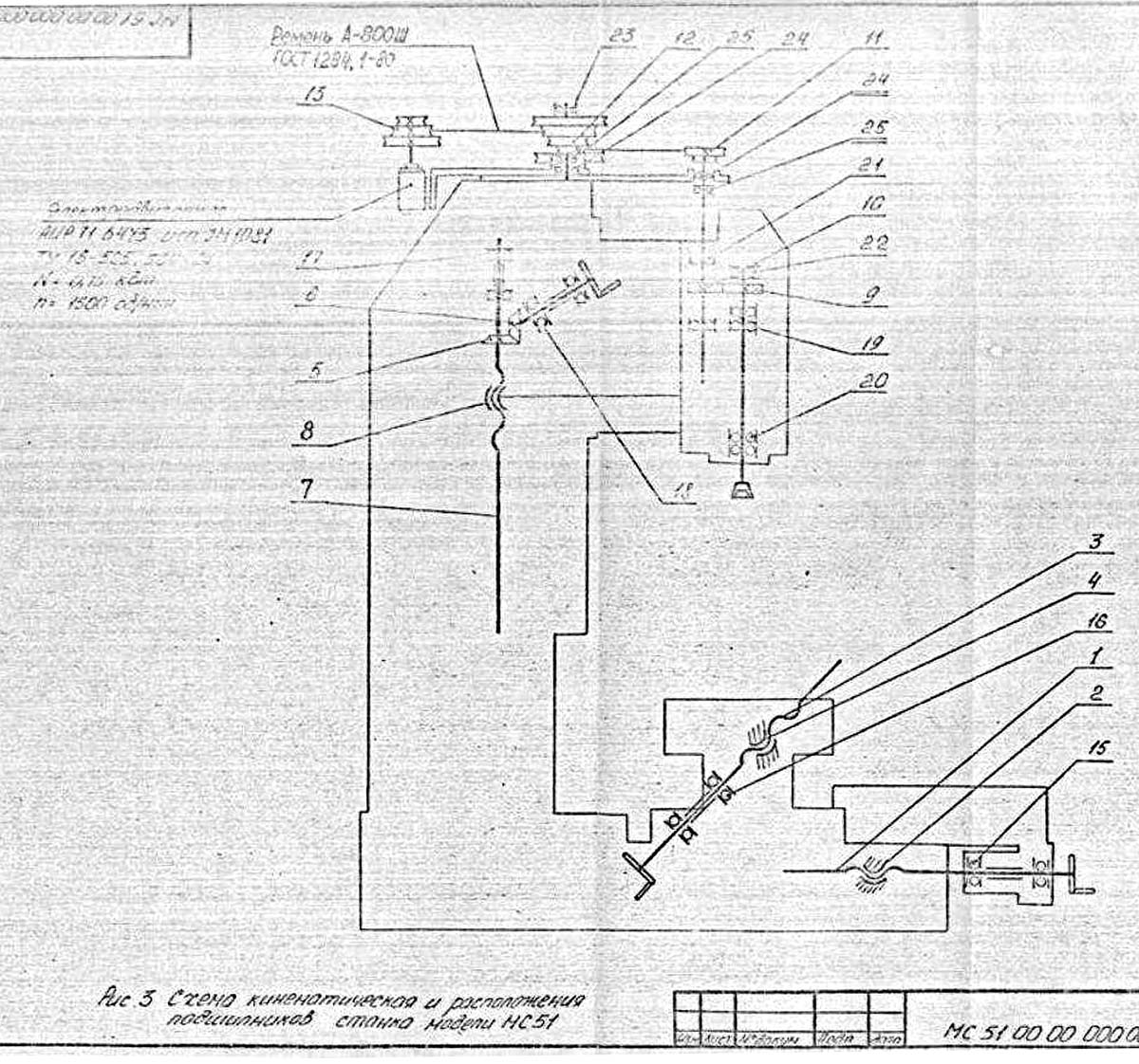 Схема кінематична фрезерного верстата МС-51. Дивитись у збільшеному масштабі