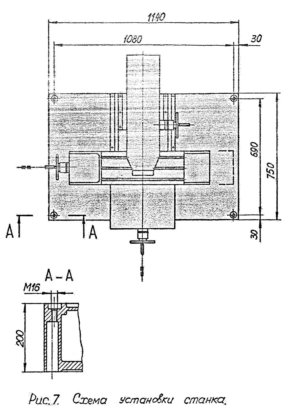 Настановне креслення настільного фрезерного верстата МС-51. Дивитись у збільшеному масштабі