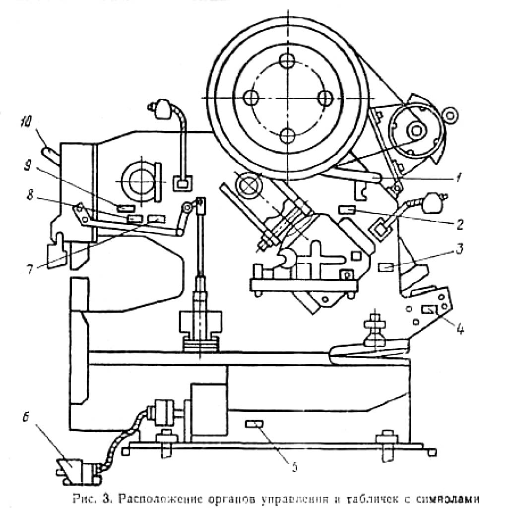 Механізм керування плунжером листовых ножниц і зарубочного пристроя — рычажный, керування дыропробивным прессом — рычажное і педальное.