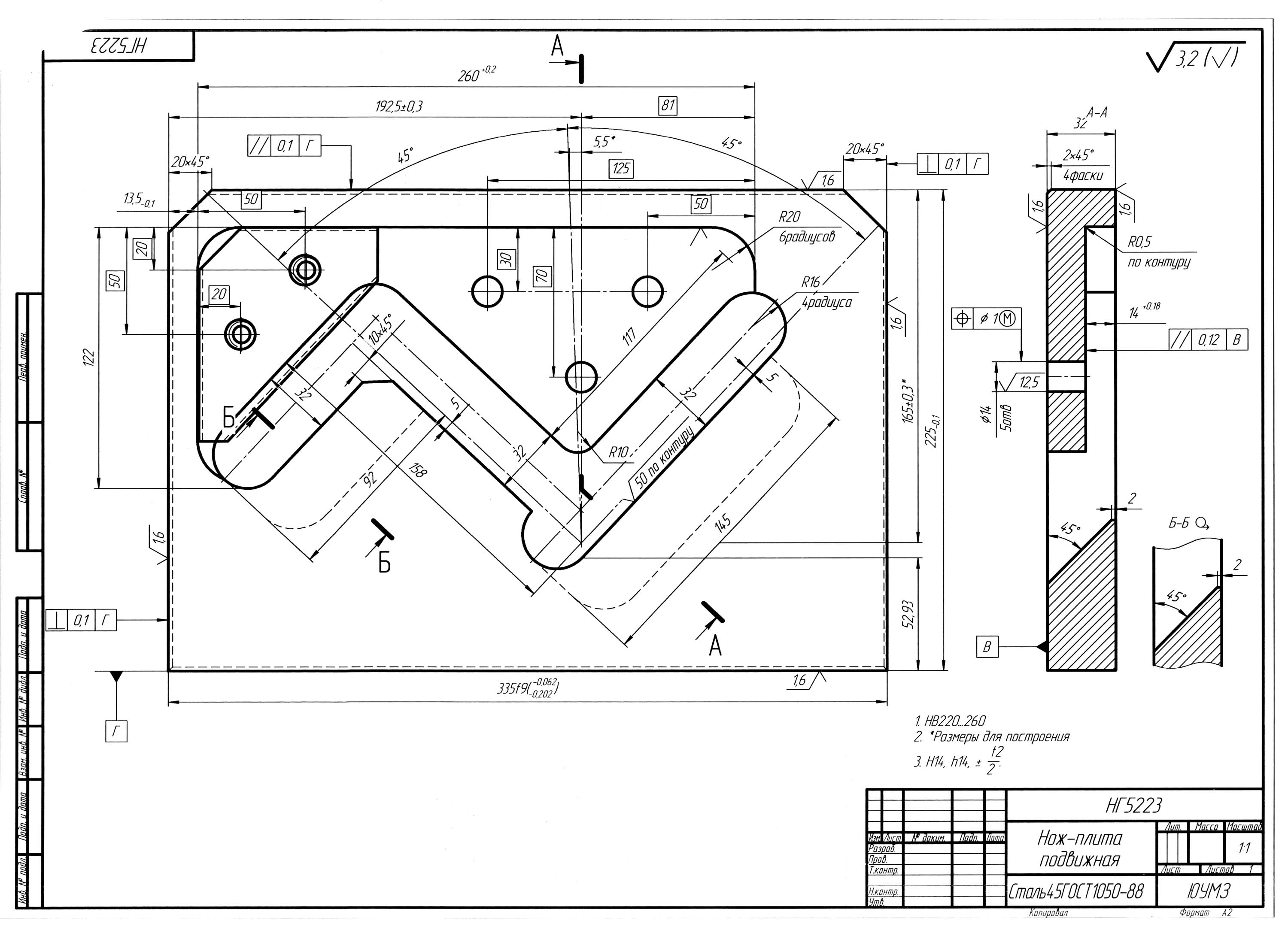 Инструмент состоит из подвижной (рис. 10) і нерухомою (рис. 11) плит 4, оснащенных ножами, которые меняют в зависимости от номера швеллера і двутавра. Нерухома плита оснащена ножами 1, 2, 3, 5, подвижная - тремя ножами 1 ...3.