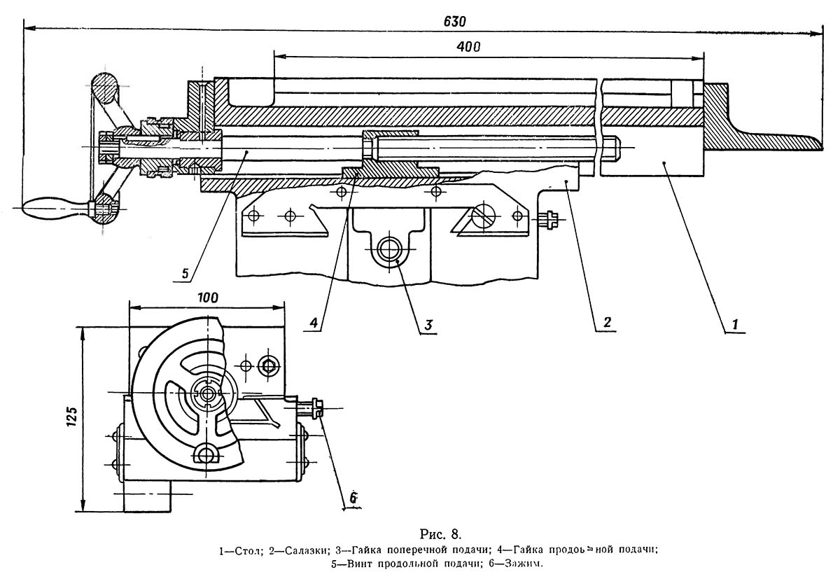 Рабочий стол верстата является післядним елементом в ланцюги подач і имеет возможность перемешаться в трех направлениях: по направляющим салазок — в продольном, вместе з салазками по направляющим консоли — в поперечном і вместе з консолью по направляющим стойки— в вертикальном.
