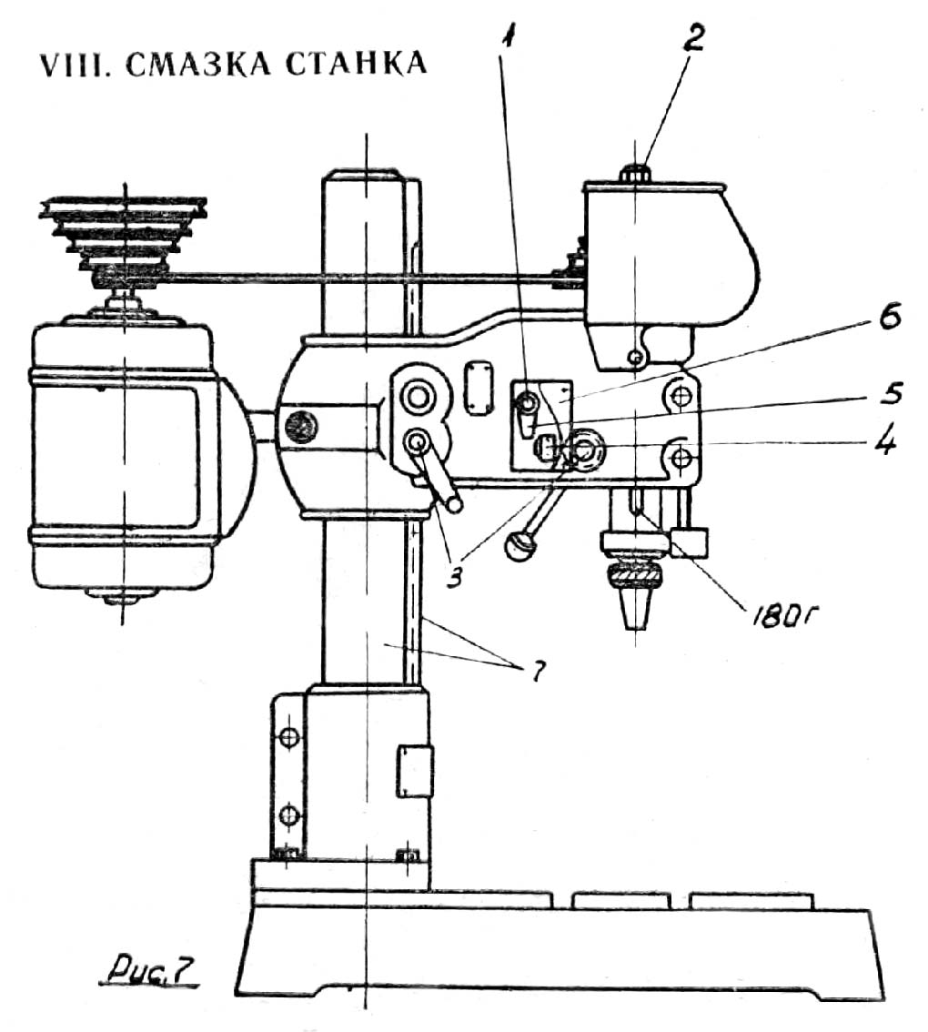 Смазка сверлильного верстата НСР-12М. Дивитись у збільшеному масштабі