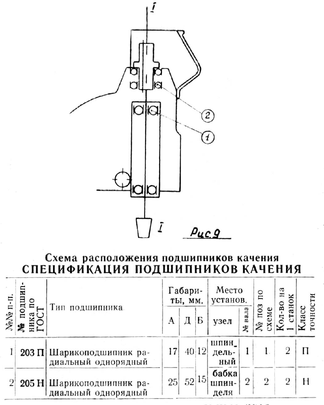 Схема розташування підшипників свердлувального верстата НСР-12М. Мал. 9)