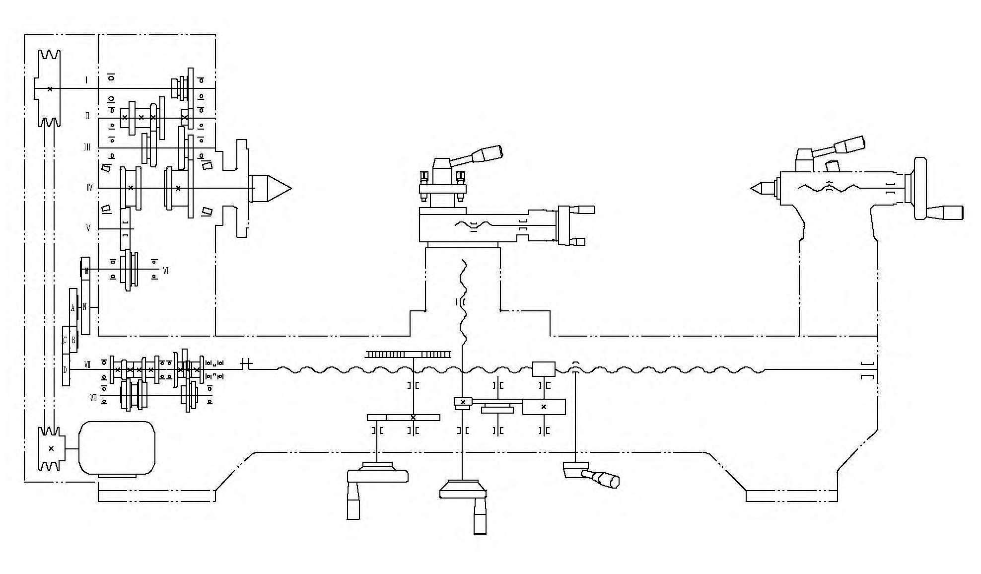 Кінематична схема токарно-гвинторізного верстата Numobams SJM280. Дивитись у збільшеному масштабі