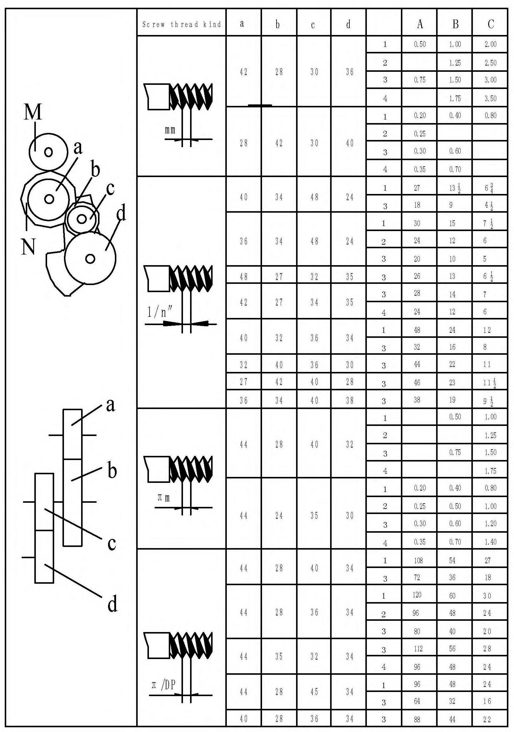 Таблиця оборотів шпинделя токарно-гвинторізного верстата Numobams SJM280