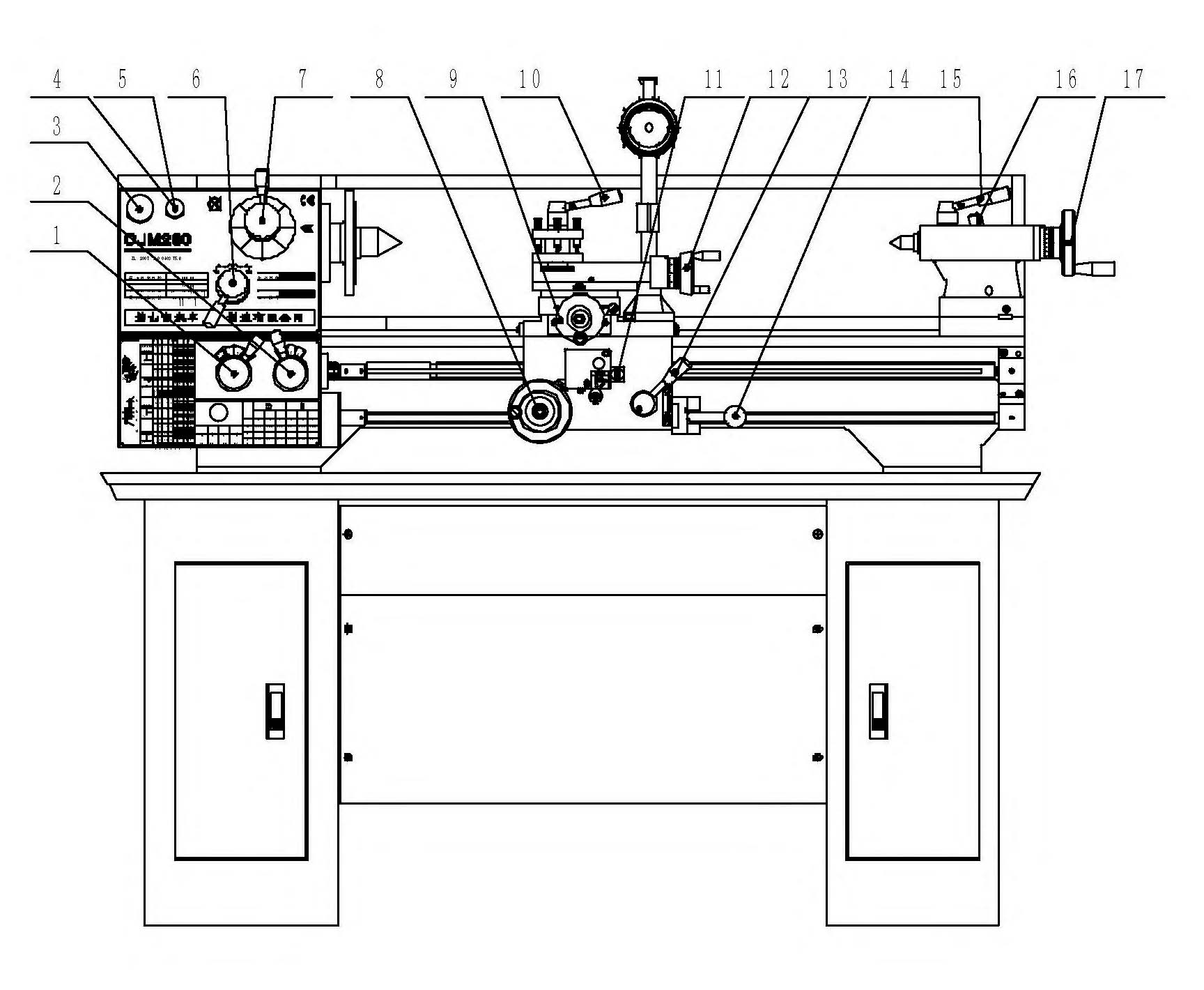 Розташування органів керування токарно-гвинторізним верстатом Numobams SJM280